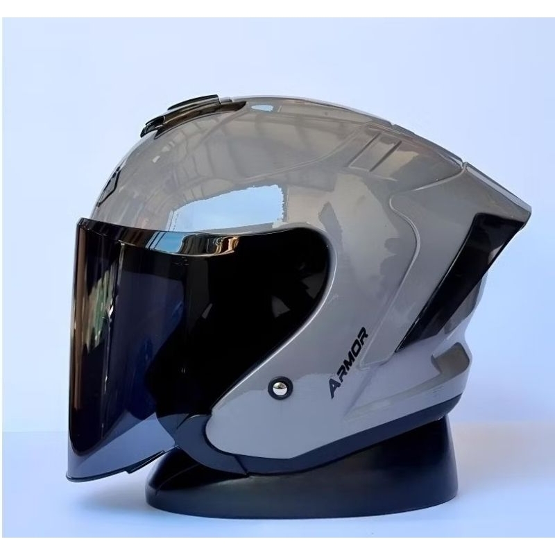 OTOMOTIF ORIGINAL STORE Helm Js Armor Solid Sni Warna Grey Glossy Helm Pria Wanita Helm Half Original