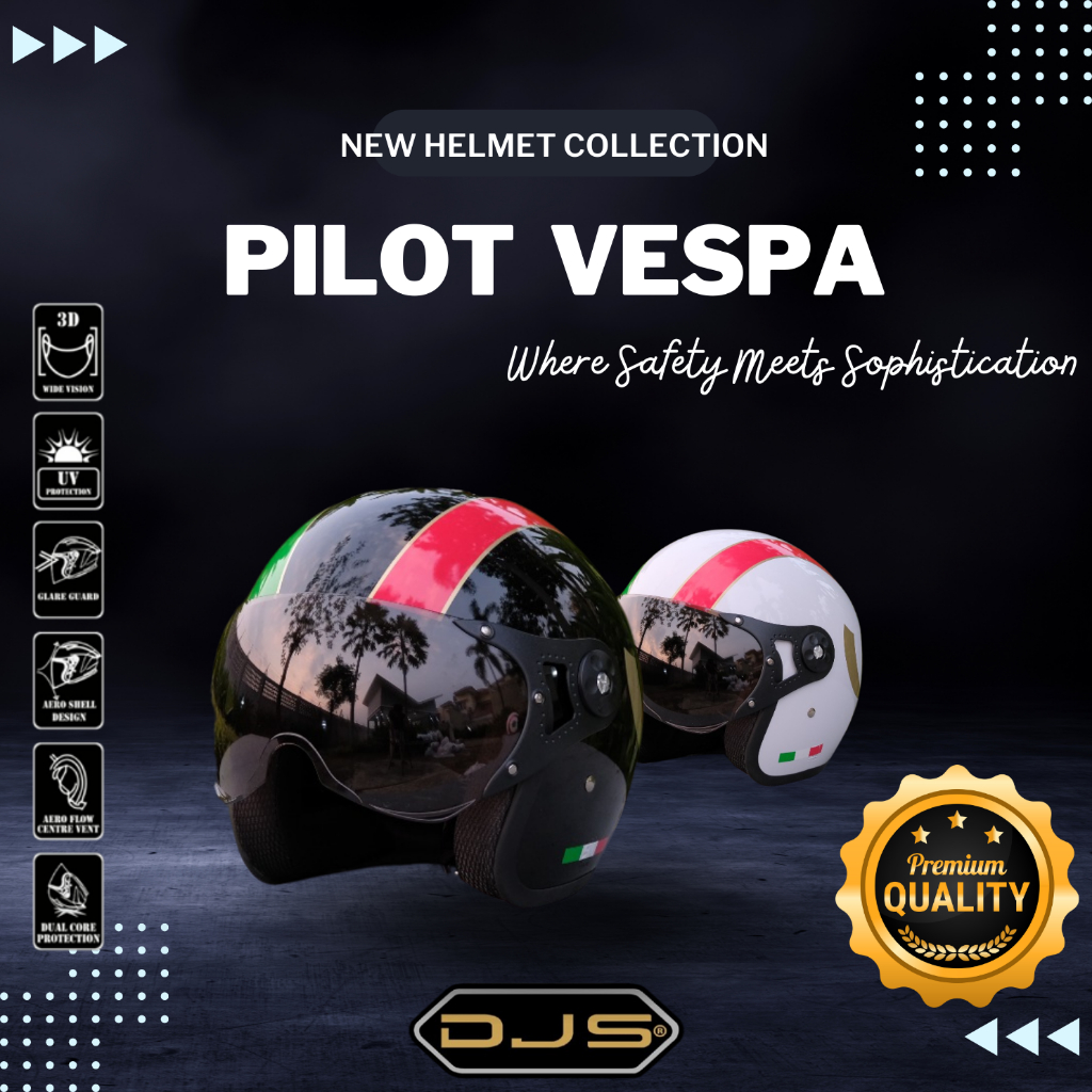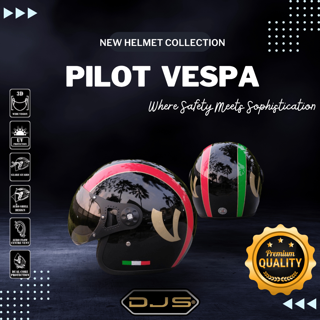 Helm Pilot Motif Vespa Italy Helem Pria Wanita Dewasa Premium Original SNI