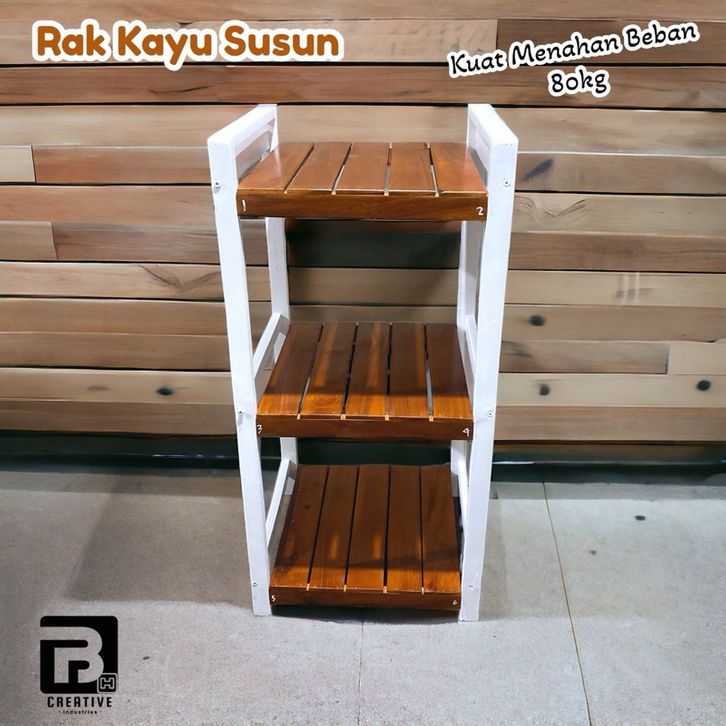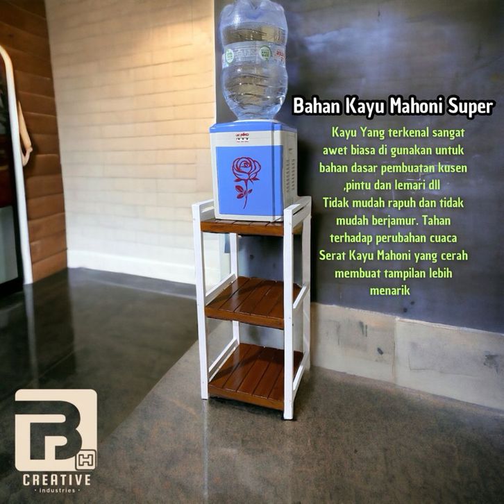 Rak Galon 3 Tingkat Meja Dispenser Galon Rak Rice Cooker Rak Kayu Susun Serbaguna