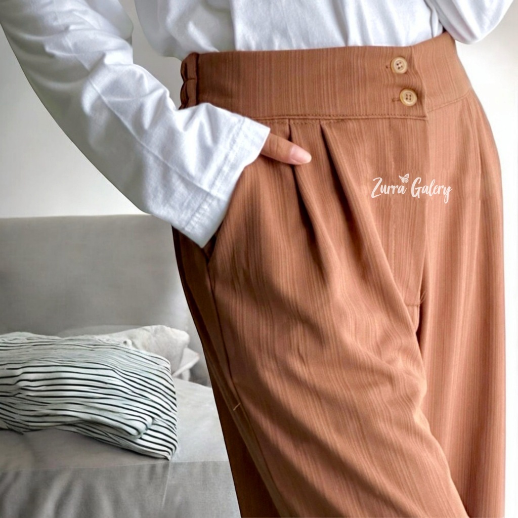 (Gratis Ongkir) Celana Kulot Knit Wanita Highwaist Jennie Pants Premium Lembut Nyaman | ZURRA Best Seller