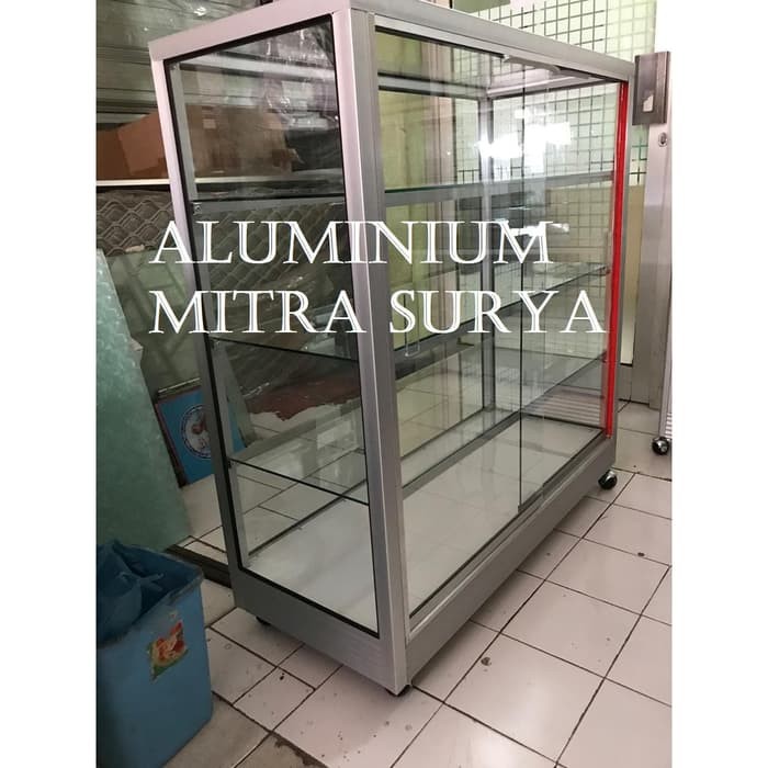 Etalase Kaca Rak Kaca Lemari Kaca Aluminium Dagang Konter Stall Roda Kios Jualan Warung Warteg Apotik 1 Meter Tangerang