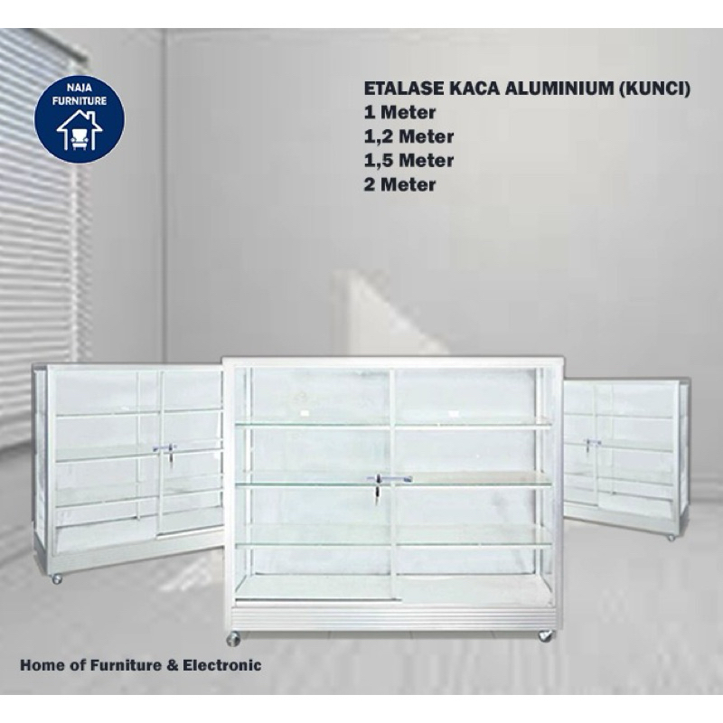 Etalase Kaca Kunci | Etalase Aluminium Kunci | Etalase Roda | Kaca Tebal | Uk 1 Meter | Uk 1,5 Meter | Uk 2 Meter