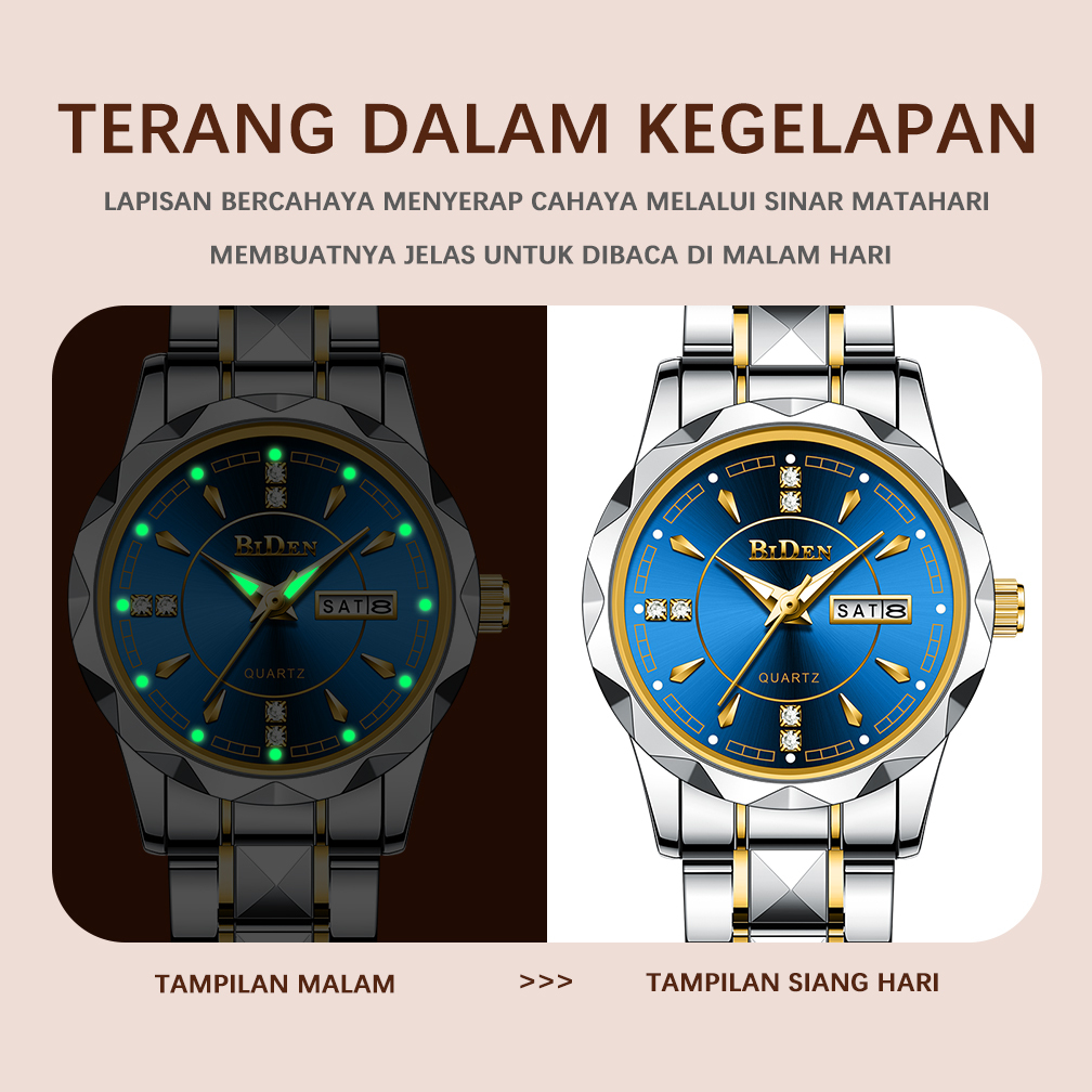 Jam Tangan Wanita BIDEN Anti Air S001 Stainless Steel Original Cewek Kuarsa Kalender Korea