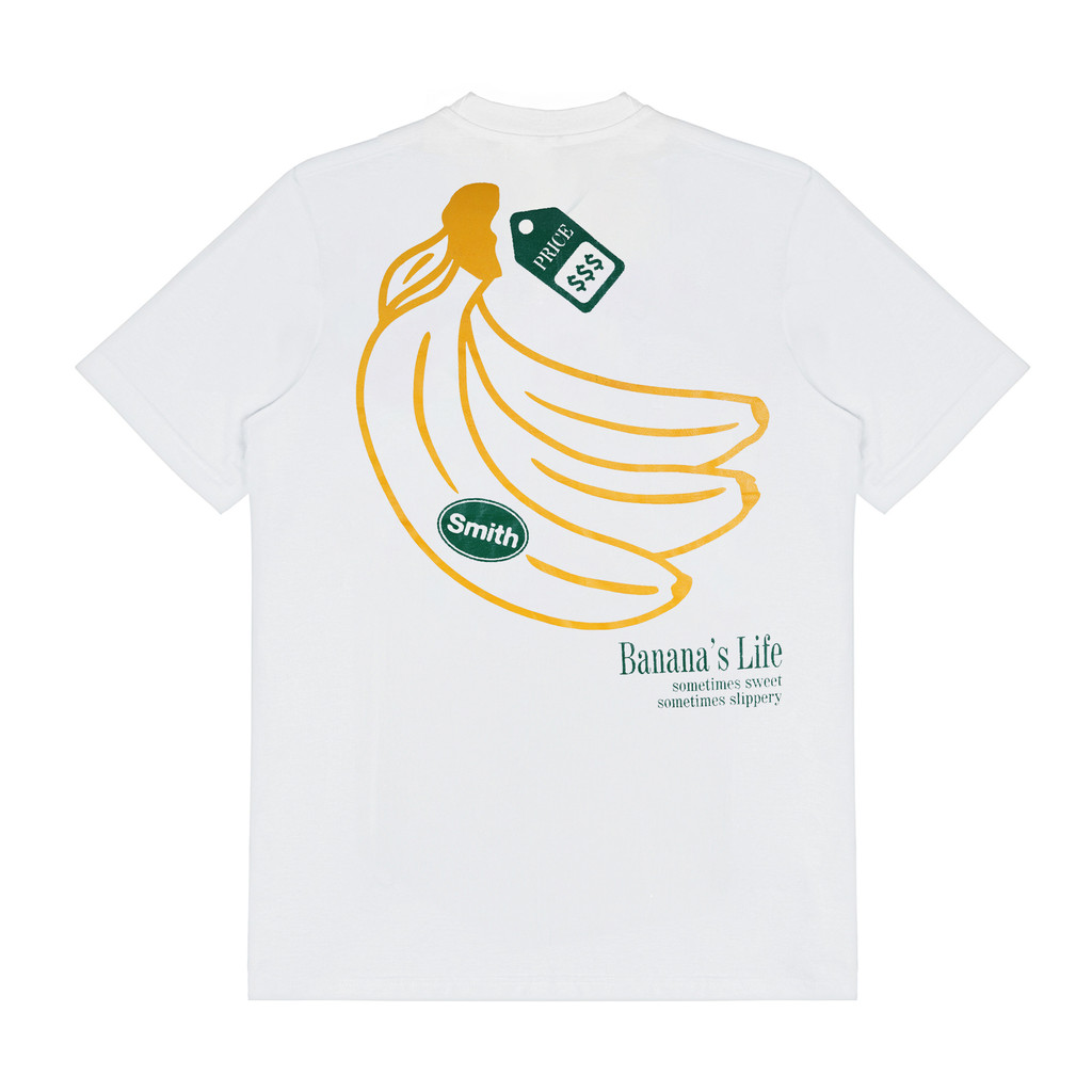 HOUSE OF SMITH Kaos Pria Distro Bandung Original Kaos Pria Lengan T Shirt Pendek - Banana Life Regular White