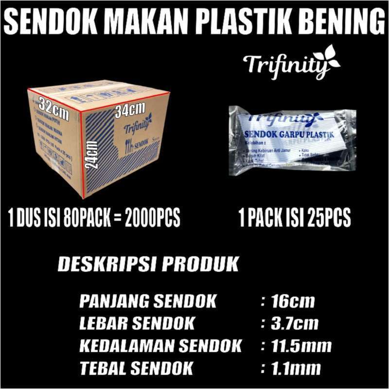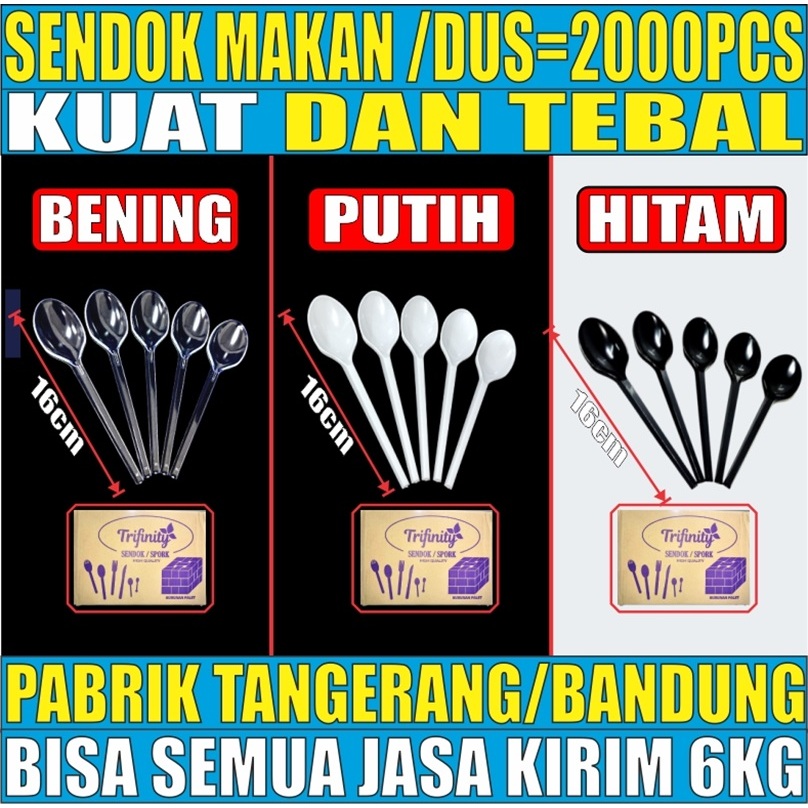 ( PROMO )Sendok Makan Plastik HALAL Kuat Tebal Panjang Bening / Hitam / Putih Trifinity Dus Bisa Semua Jskrm