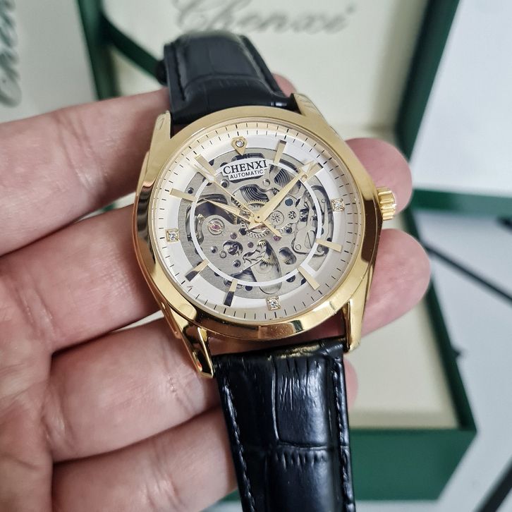 CHENXI Invisibilis Jam Tangan Pria Original Automatic Otomatis Kulit Hitam Gld Putih Anti Air