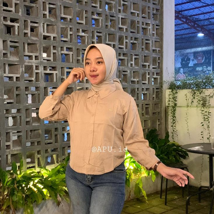 (Gratis Ongkir) Kemeja Crop Rayon Twill Sakura Crop Premium