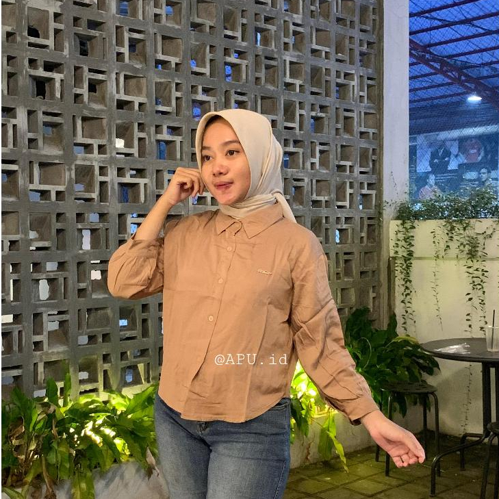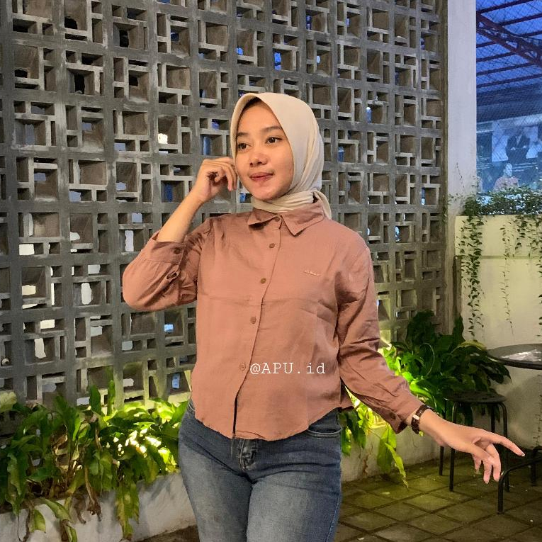 (Gratis Ongkir) Kemeja Crop Rayon Twill Sakura Crop Premium