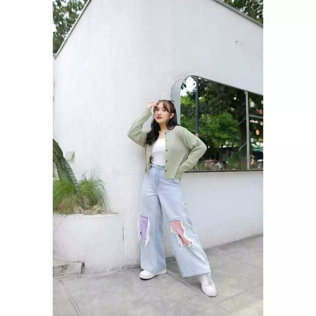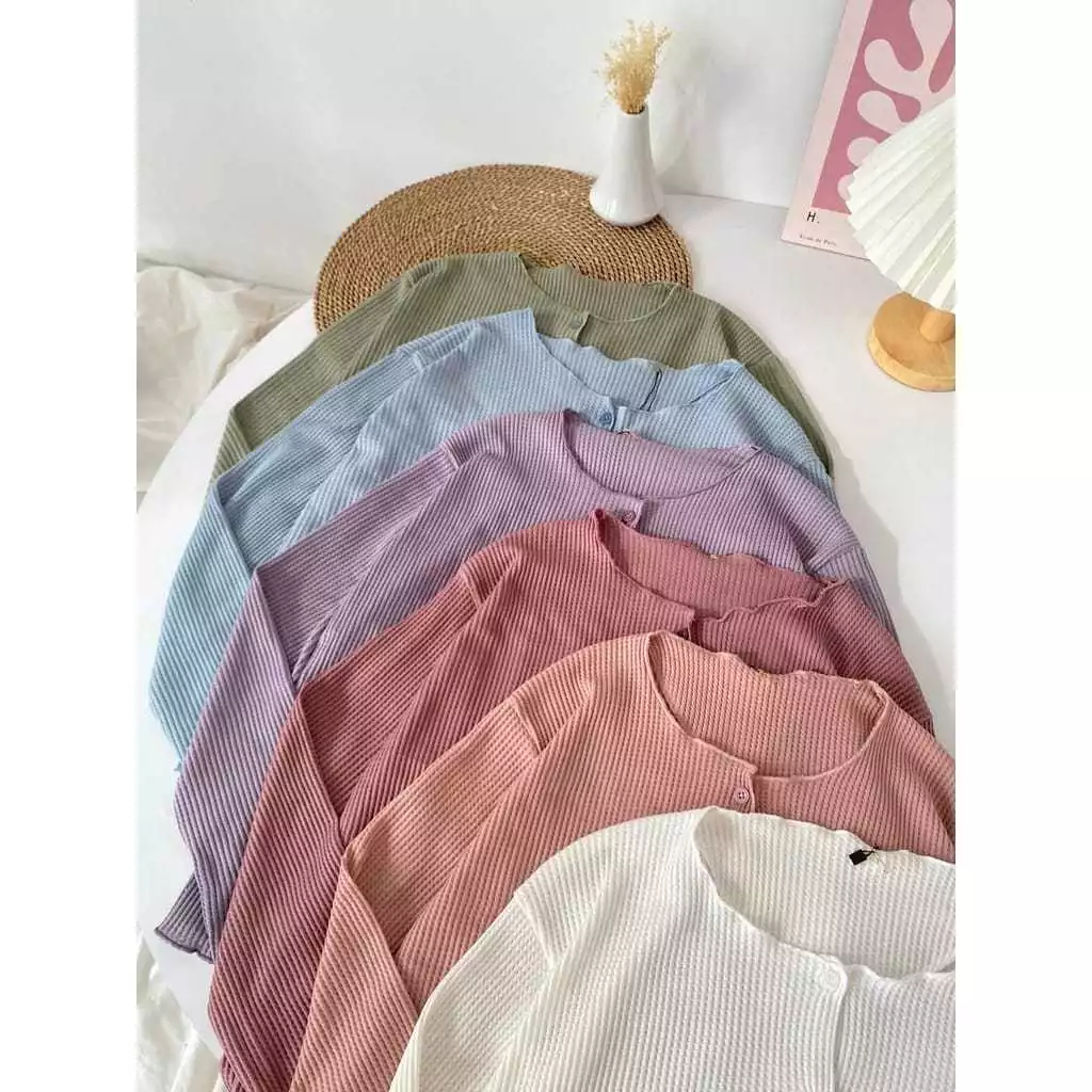 Cardigan Wanita Rajut Crop Top Waffle Kriwil Series Premium Cardigan Korean Style Motif Polos Lengan Panjang Terlaris