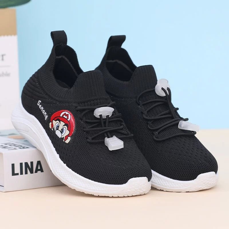 Sepatu Sekolah Anak Perempuan Laki-laki Slip On Rajut Sneakers Tali Motif MARIO - LX102-T [GRATIS ONGKIR]