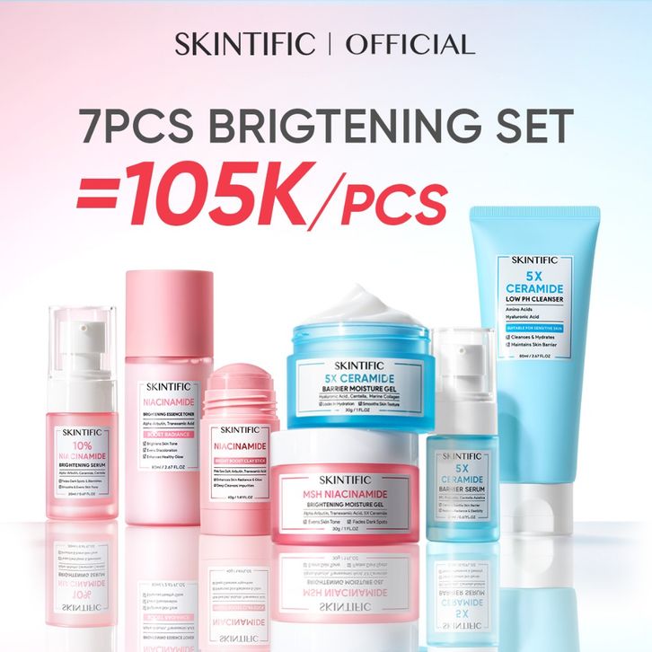 [Mall] SKINTIFIC-7pcs Paket Skincare Set | Serum Moisturizer Gel Toner Sunscreen Clay Stick Cleansing Mouss