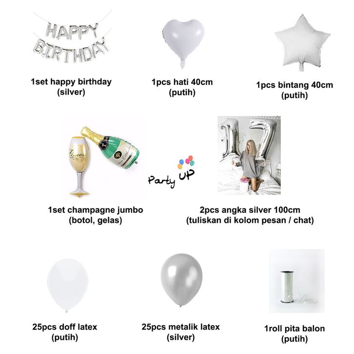 [PAKET] CHAMPAGNE SILVR DOFF PUTIH DEKORASI ULANG TAHUN