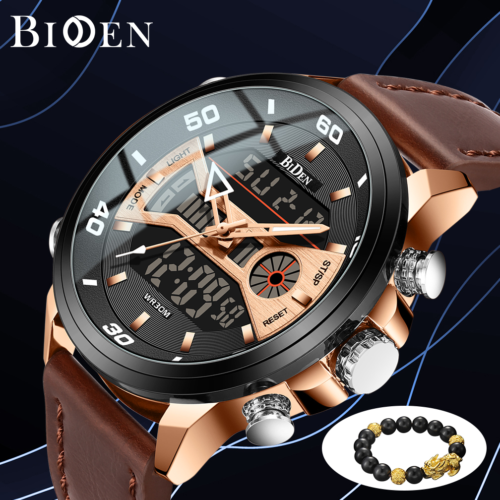 Jam Tangan Pria BIDEN Anti Air Analog & Digital Tali Kulit Sport Original Cowok