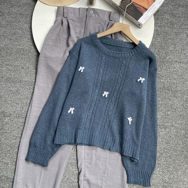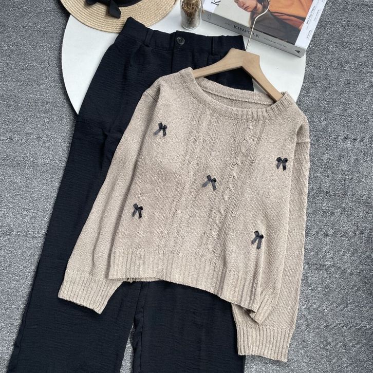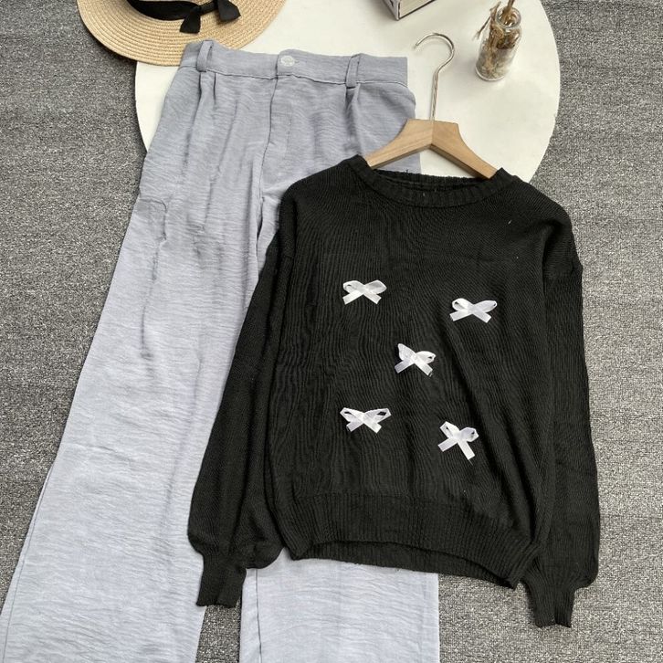 One Set Wanita Kekinian Setelan Baju Atasan Rajut & Celana Kulot Crinkle Airflow Korean Style