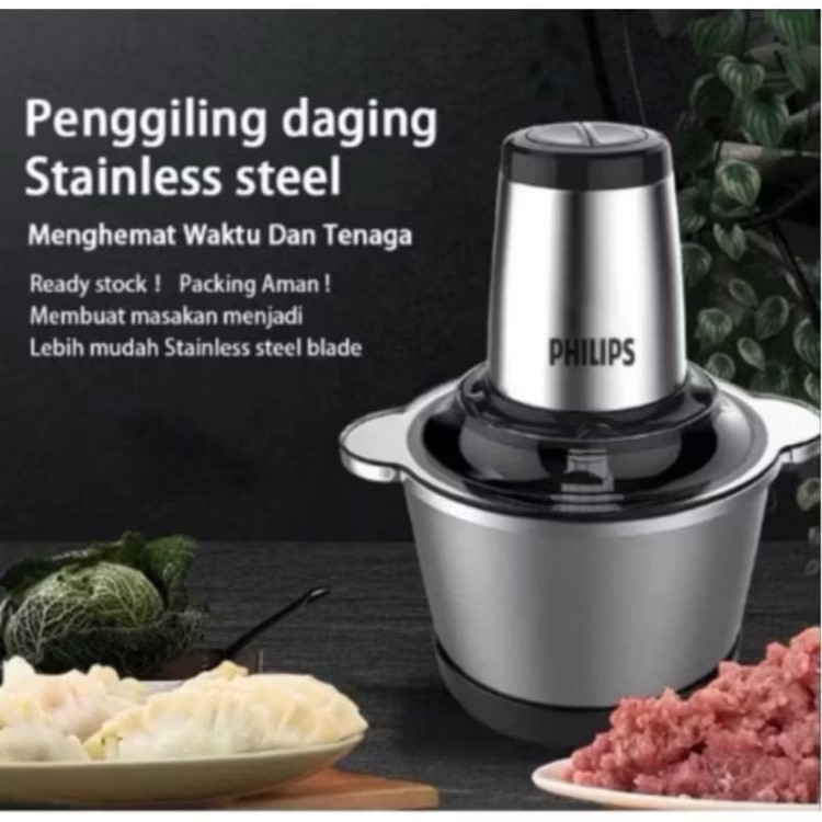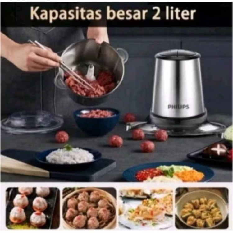 Chopper PHILIPS 2L Blender Daging Bumbu Mini Kapsul Penggiling Elektrik Serbaguna Stainless Steel