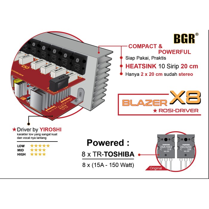 TERMURAH KIT POWER BLAZER X8 800W ROSI MONO TR TOSHIBA ASLI JEPANG JAPAN 2SA1943 2SC5200 800 W WATT MONO TR TOSHIBA A194