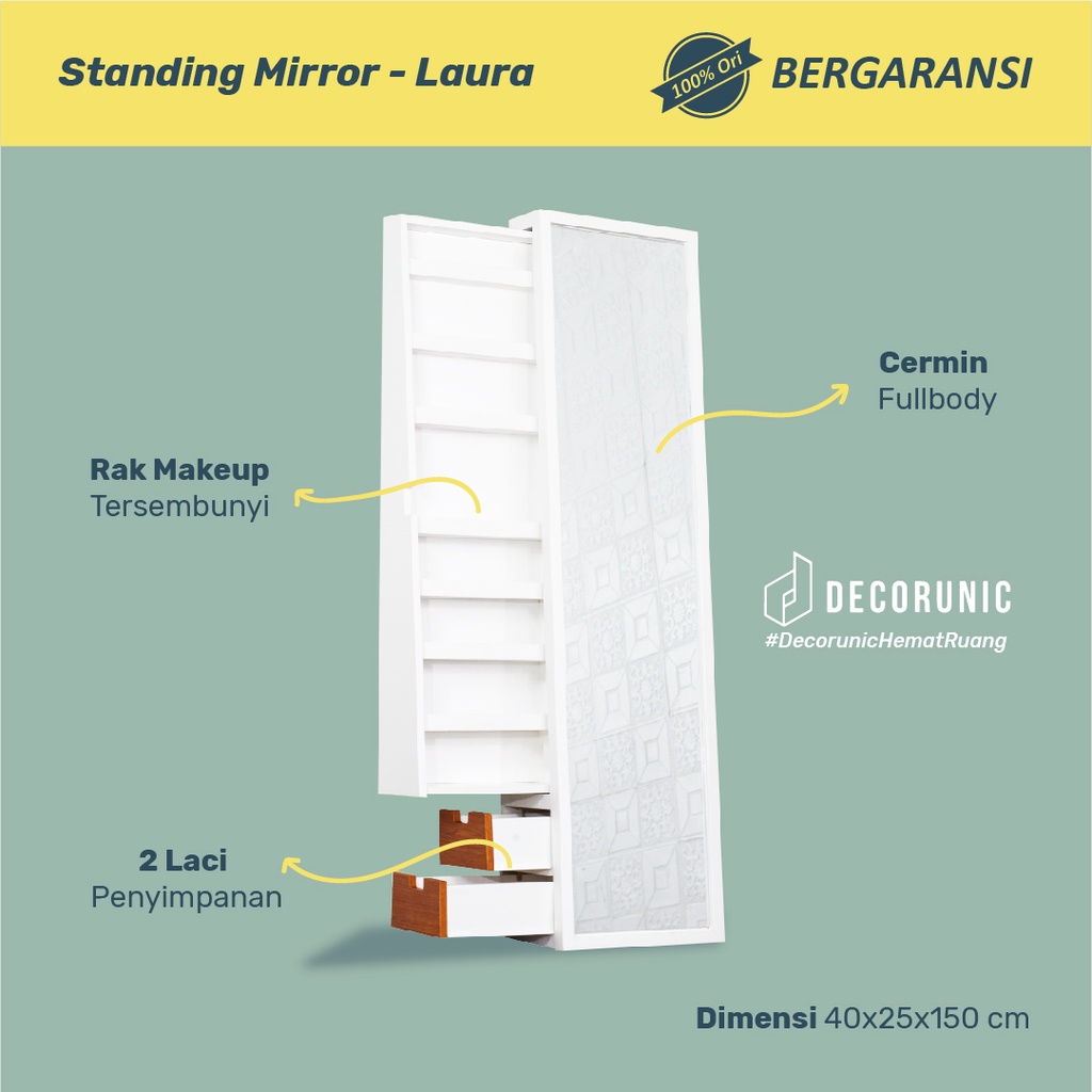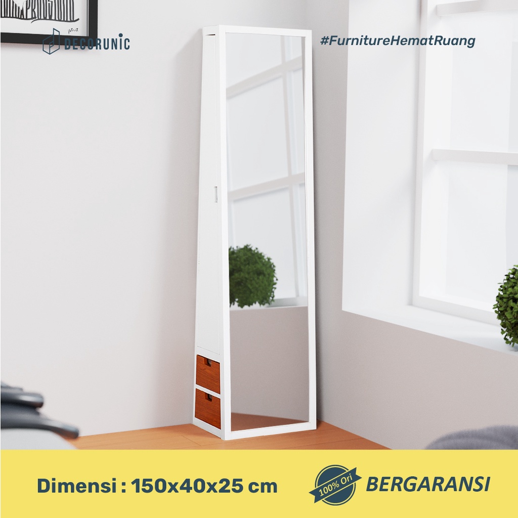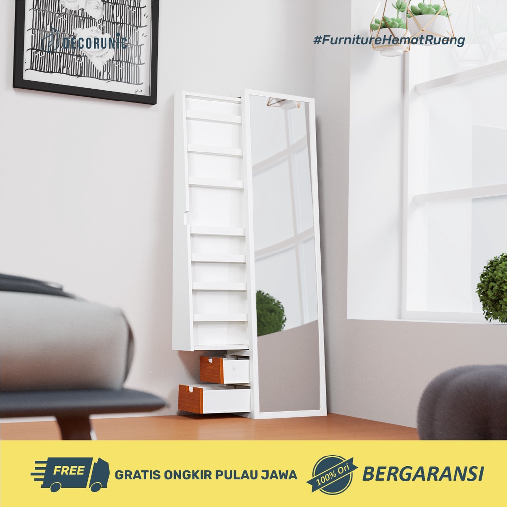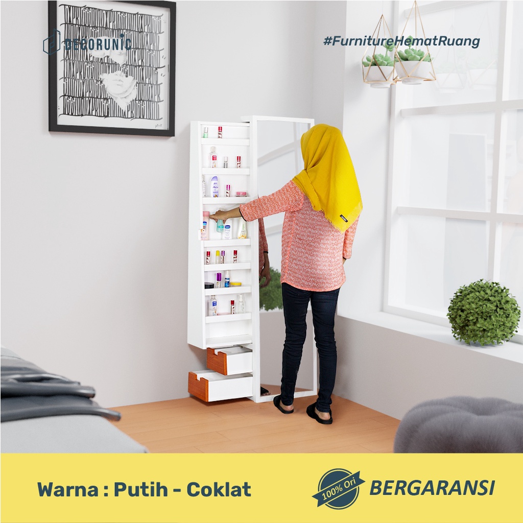 Cermin Full Body Dengan Rak Make Up - Cermin Berdiri Dengan Rak Penyimpanan Lemari Make Up Minimalis