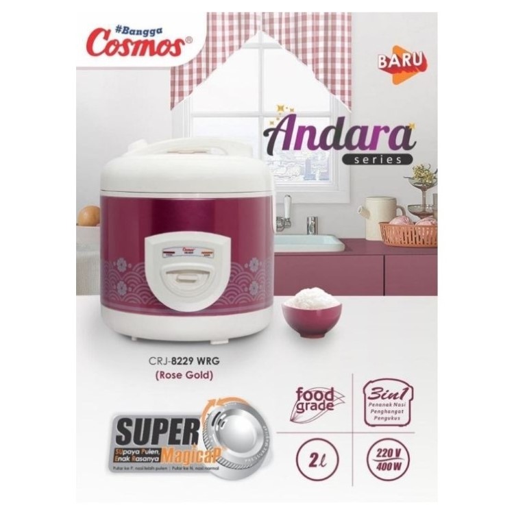 [Mall] Rice Cooker Magic Com COSMOS CRJ-8229 Body Stainless (2 Liter) Mejikom Magicom Megicome Murah
