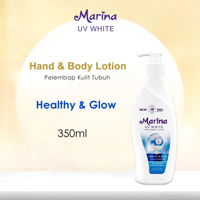 Lotion Tubuh & Tangan Marina UV White 350ml dengan Pompa - Pencerah Handbody Vitamin Mencerahkan - Healthy Glow
