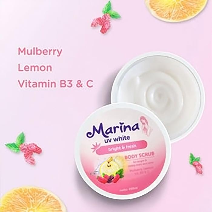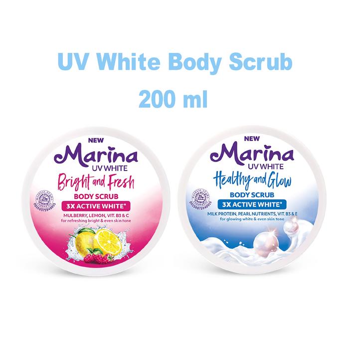 Murah Marina UV White Body Scrub 200 ml - Lulur Badan - Bright & Fresh