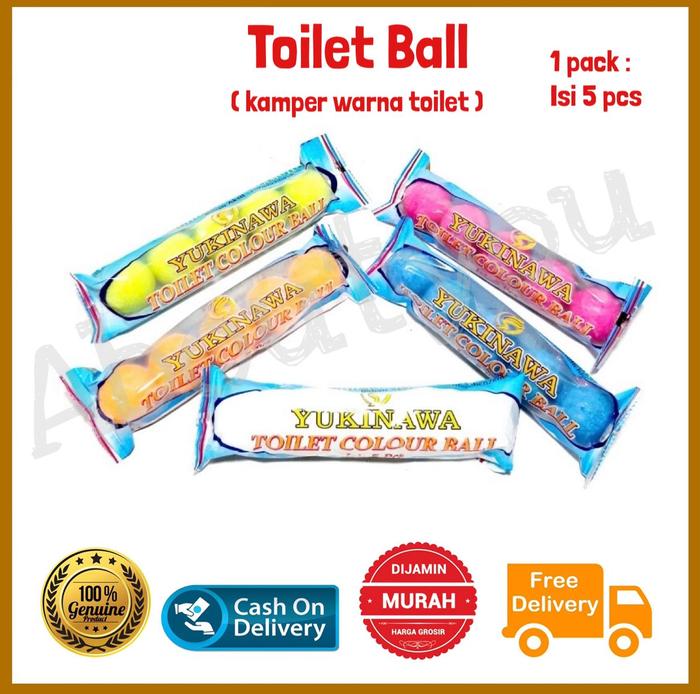 1 Pack isi 5 TOILET BALL Besar Warna Bola Kamper Toilet Serbaguna Kamper WC Kapur Barus Besar Wangi Bunga Clean