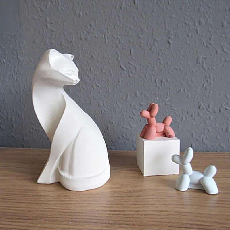 Patung Kucing Concrete Aesthetic / Cat Statue / Pajangan Dekorasi Hiasan Meja Estetik / Properti Foto Video Konten Produ