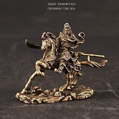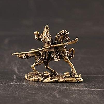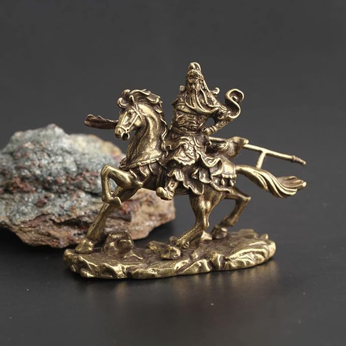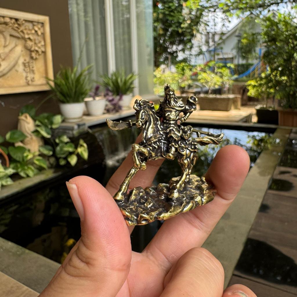 Figure Dewa Perang Guan Gong / Kwan Kong Berkuda / Miniatur Patung Dewa Perang & Kuda Tembaga Dekorasi Meja Kerja Kantor