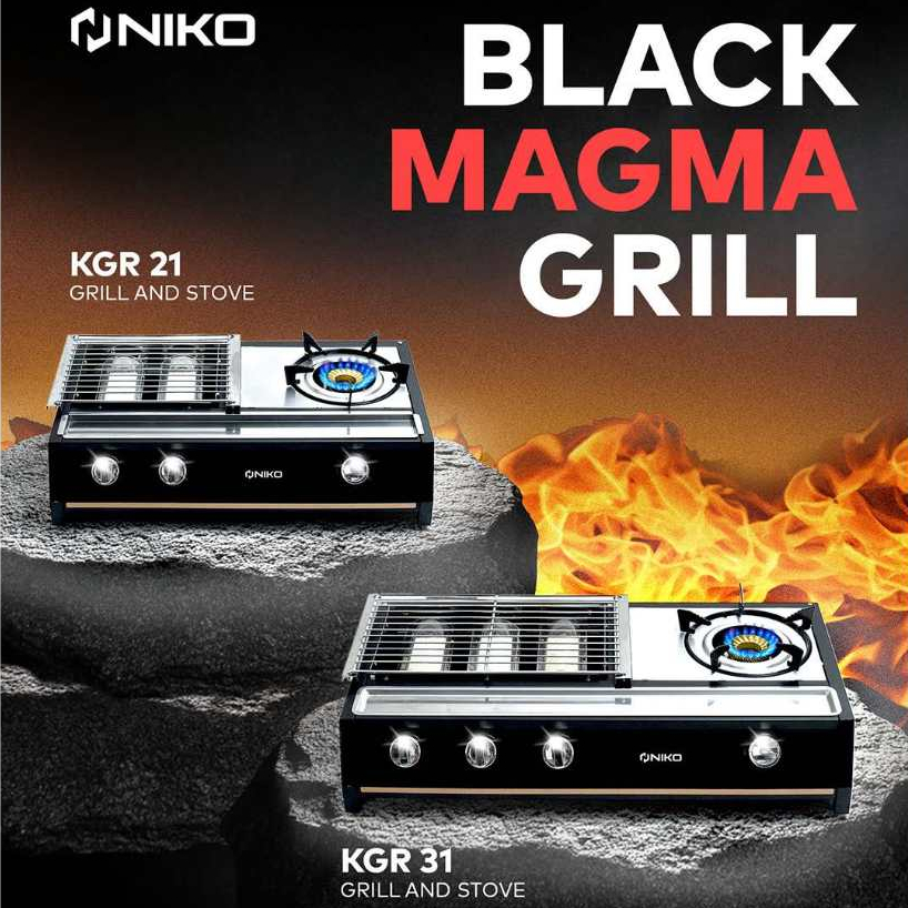 Niko KGR21 / KGR31 Kompor Gas & Panggang Sosis Bakar 3 Tungku BBQ Barbeque Grill Set Stainless Steel