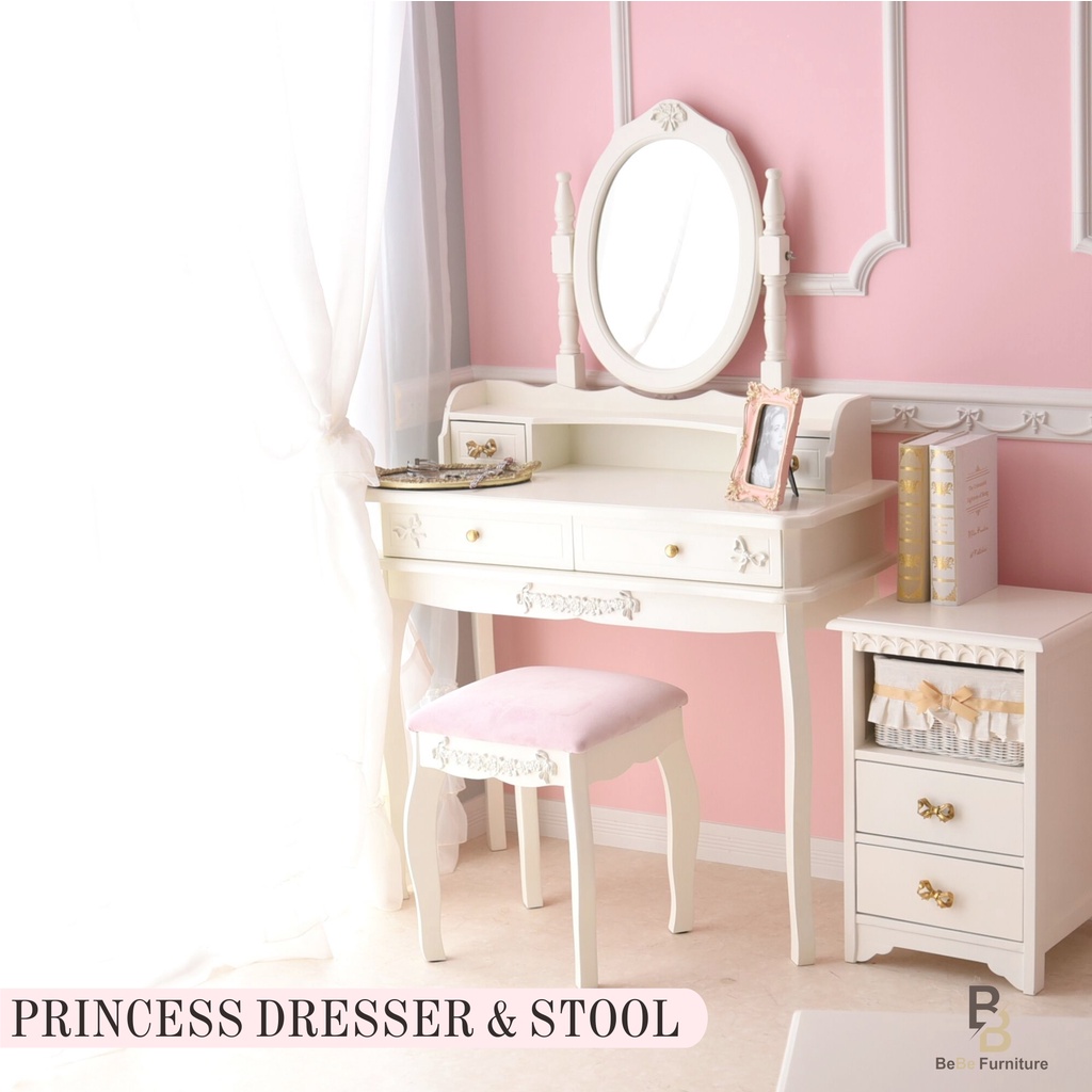 [Star]meja rias set minimalis estetik + kursi putih White aesthetic kayu belajar cantik classic cermin