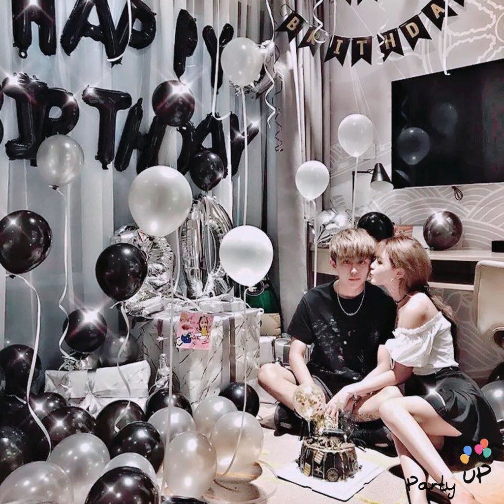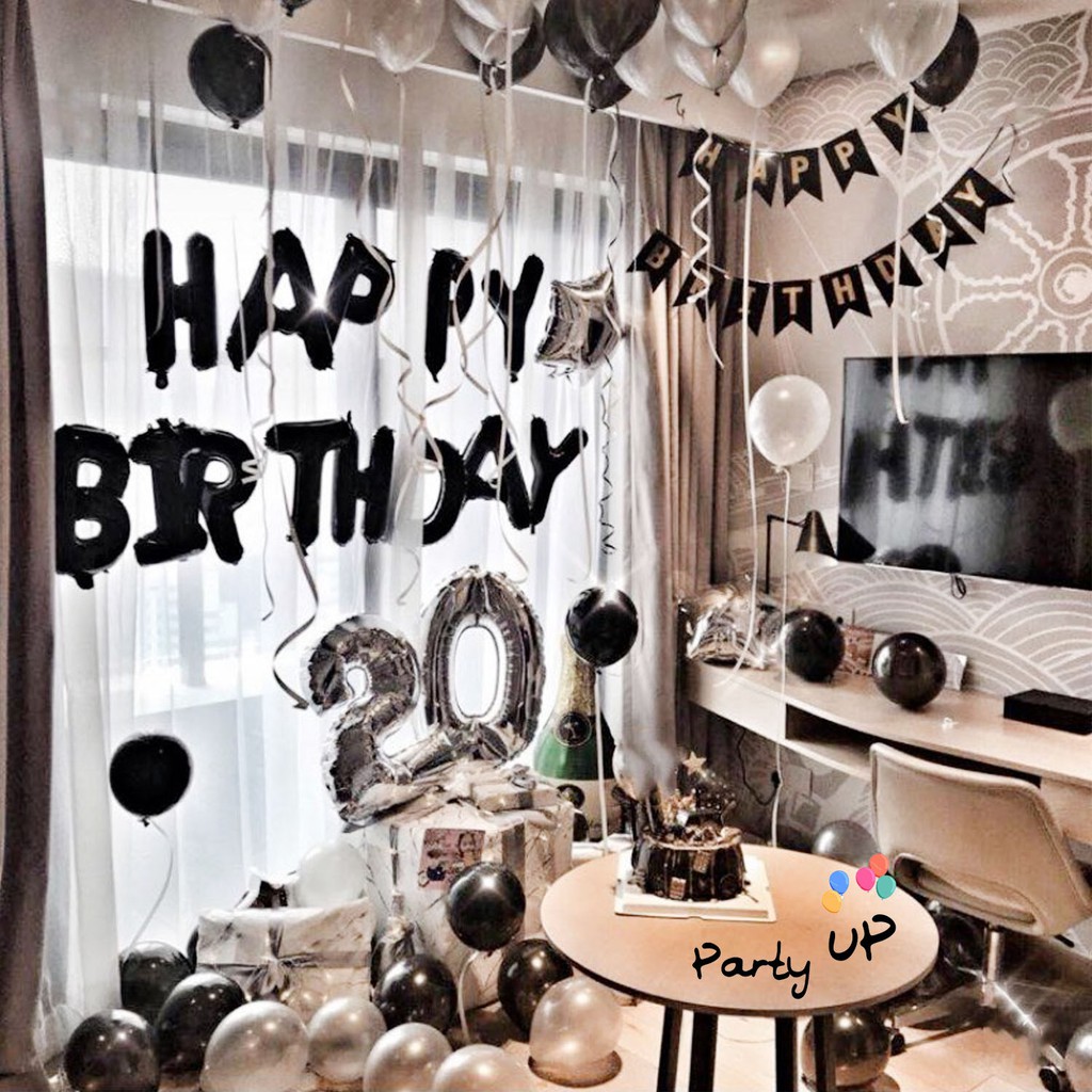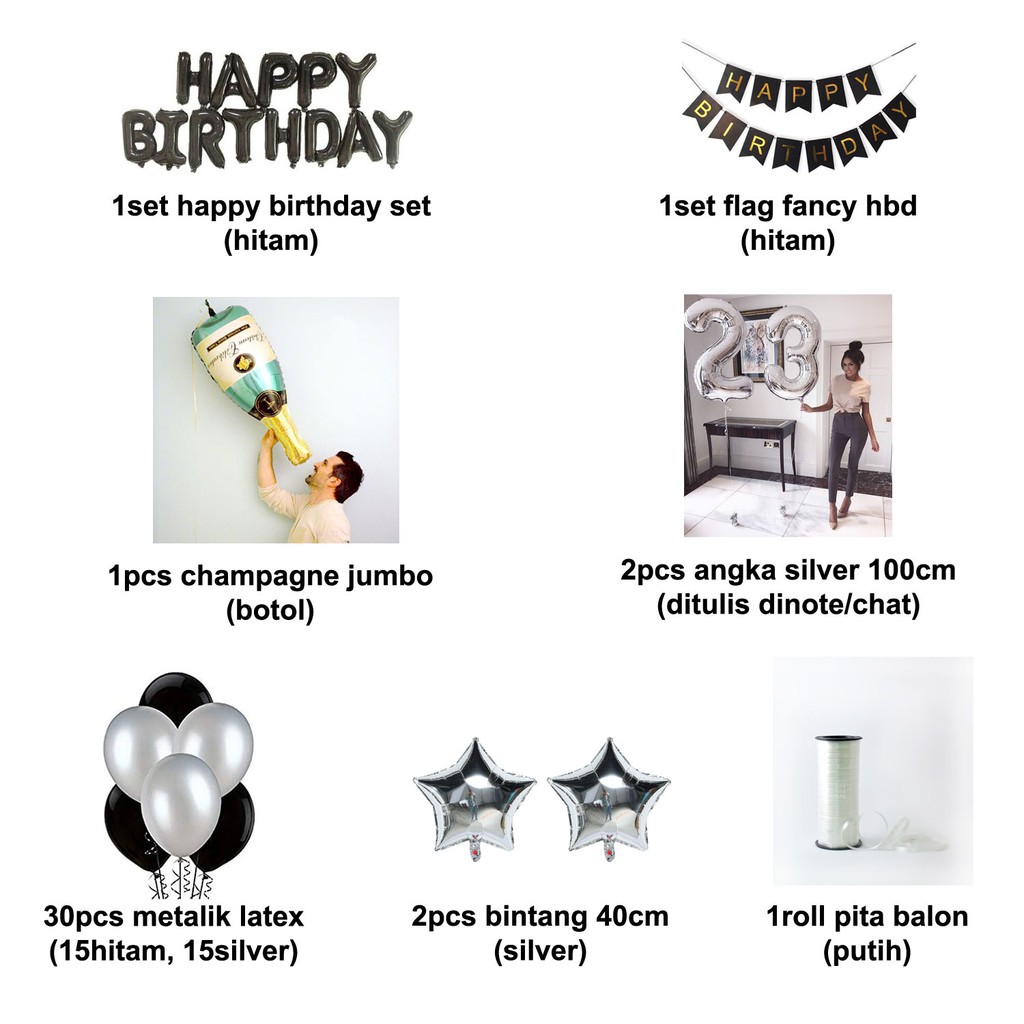 [PAKET] BALON HITAM SILVER FOIL THEME