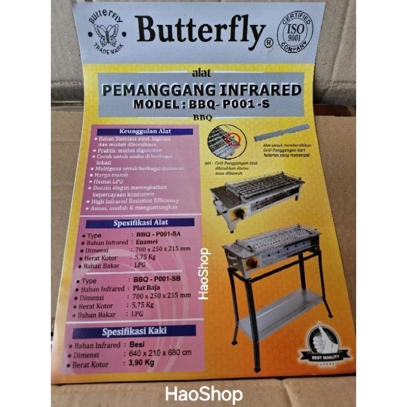 Kompor Panggang Sosis Full Stainless Gas LPG Panggangan Infrared Butterfly BBQ P001 Pemanggang Sosis Sate Ayam Ikan Daging Bakaran Serbaguna