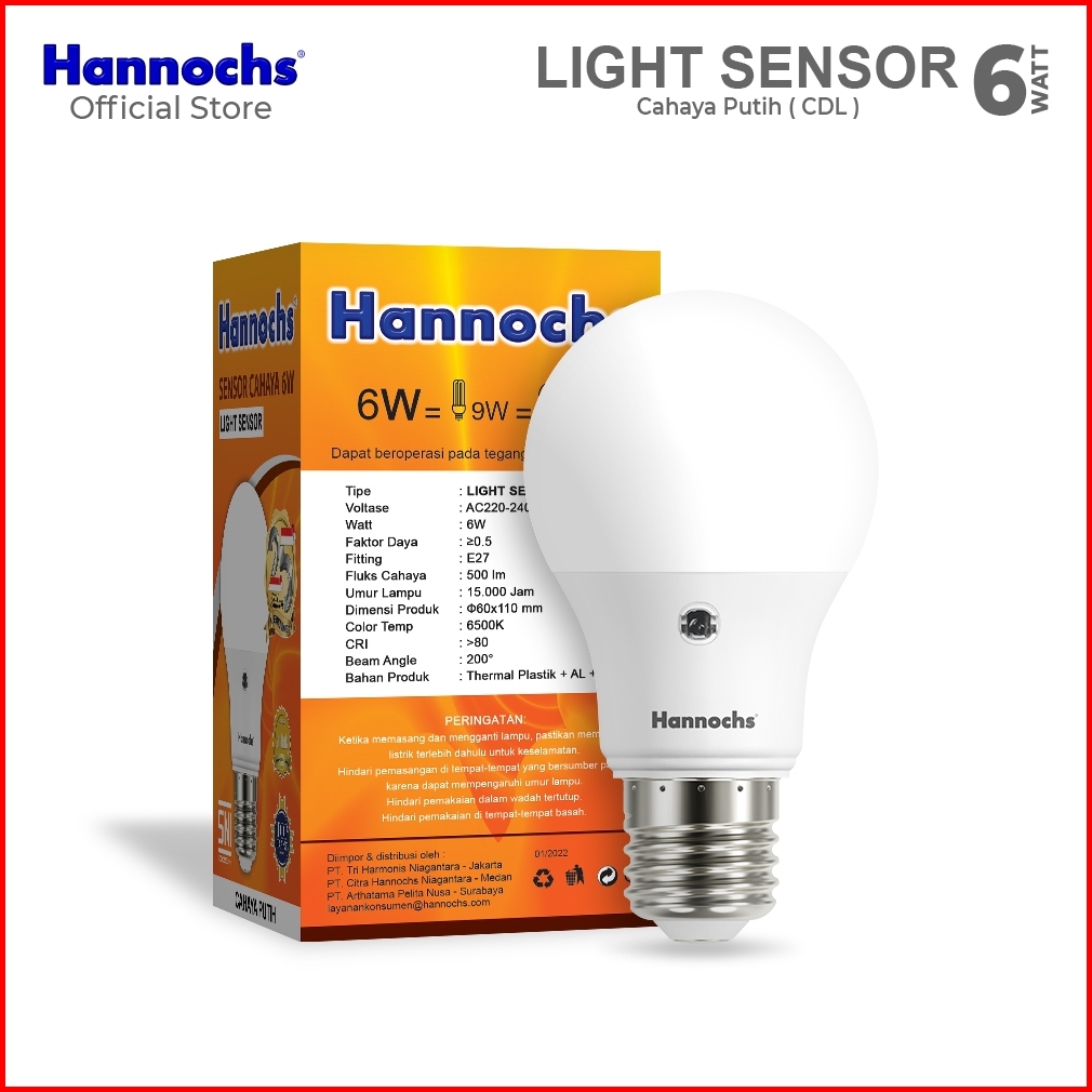 Hannochs Lampu Bohlam Led Light Sensor Sensor Cahaya 6w Cahaya Putih
