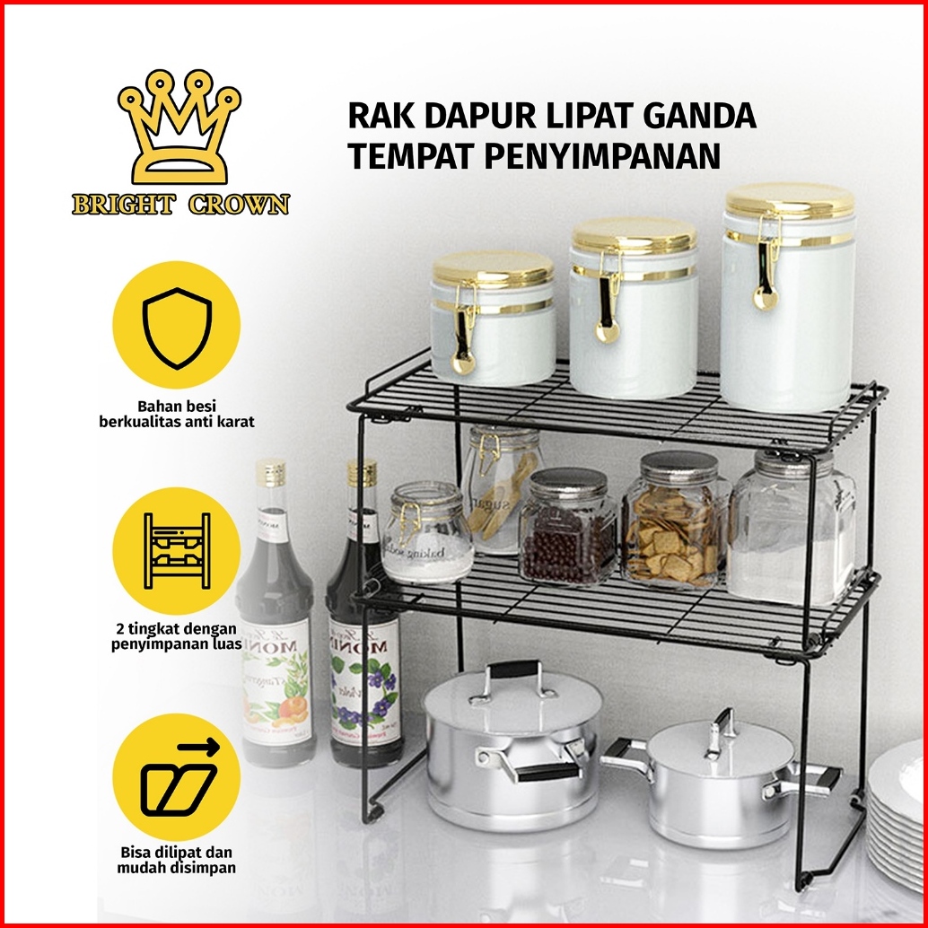 Bright Crown Rak Besi Lipat Tingkat Rak Bumbu Dapur Besi Lipat Rak Besi Serbaguna