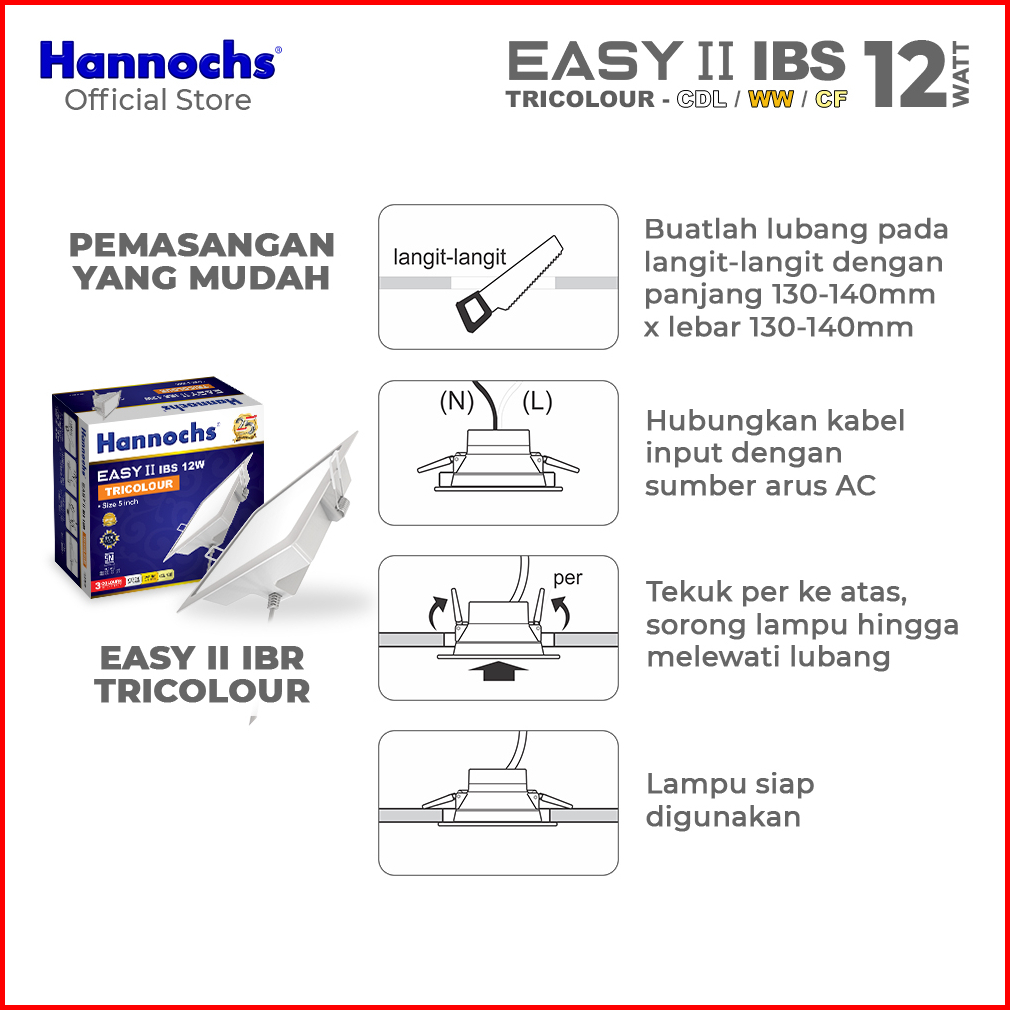 Hannochs Lampu Downlight Led Easy Ii 12w Ibs Tricolour Inbow