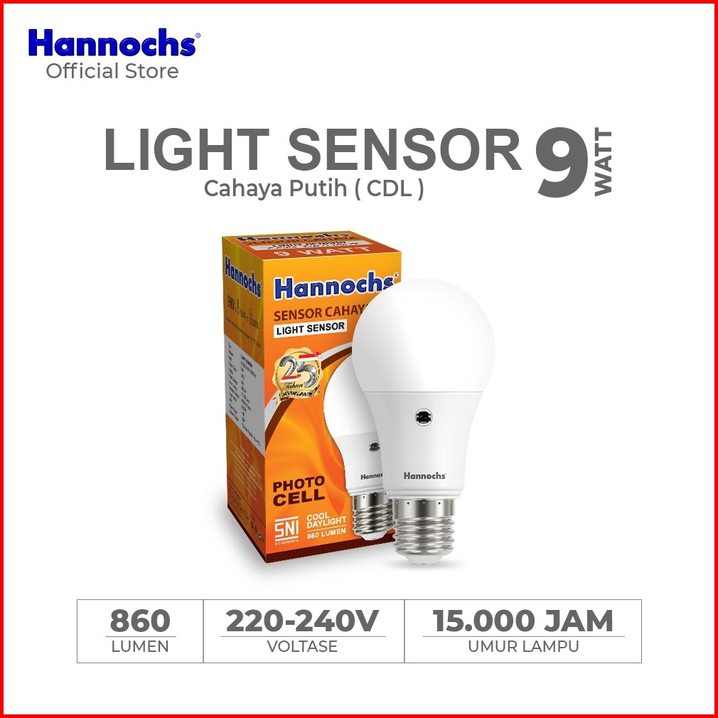 Hannochs Lampu Bohlam Led Light Sensor Sensor Cahaya 9w Cahaya Putih