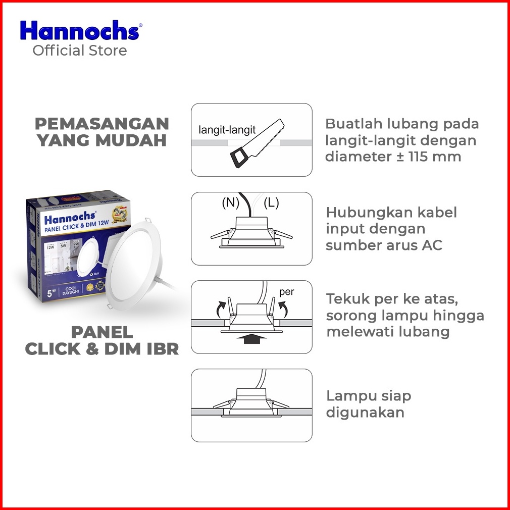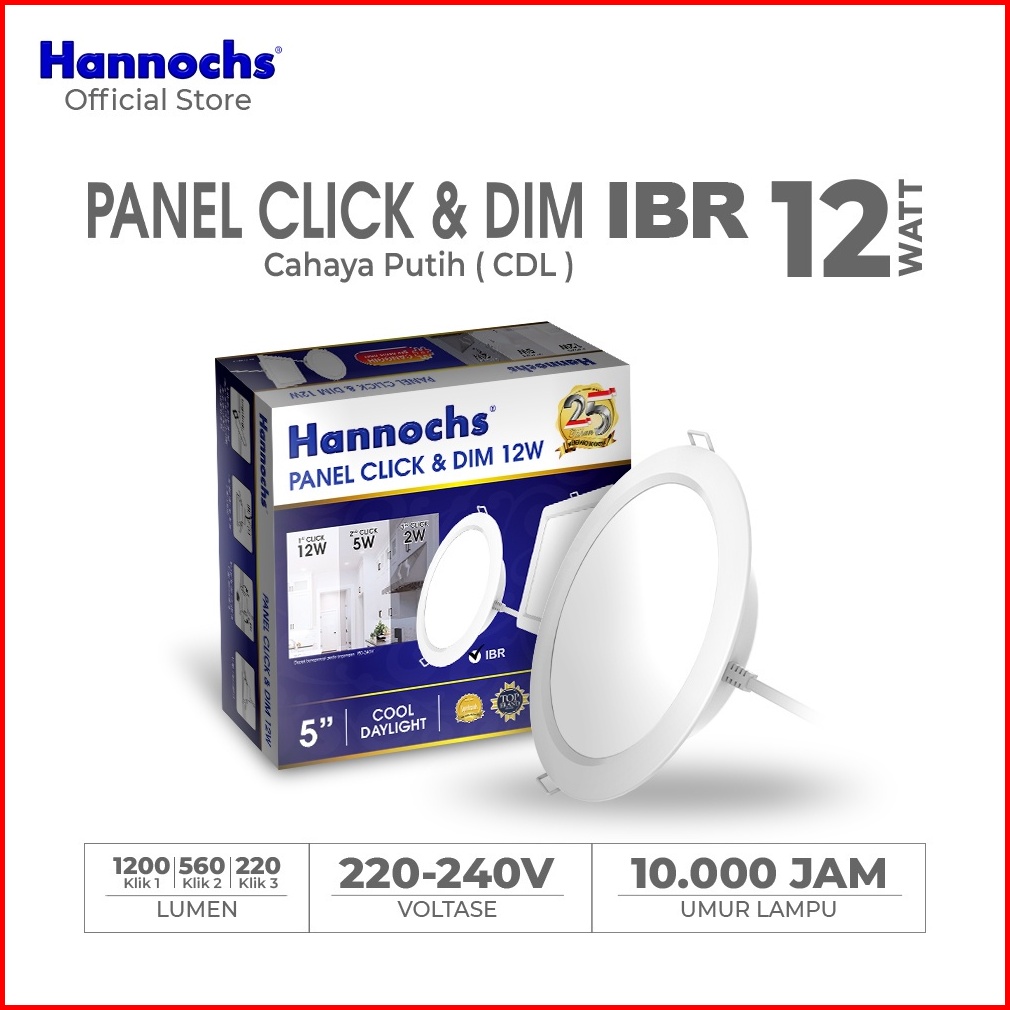 Hannochs Lampu Downlight Led Panel Click Dim 12w Ibr Cahaya Putih