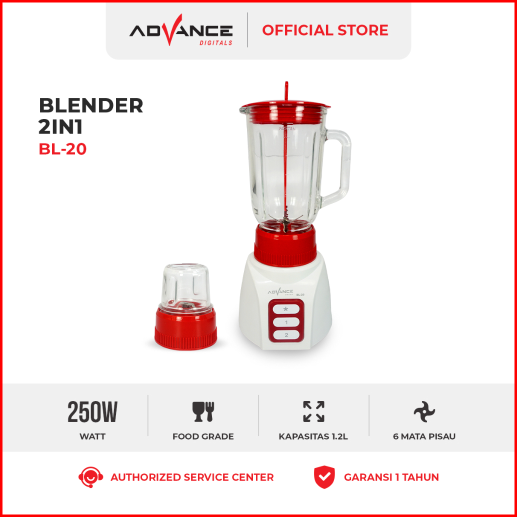 Advance Bl20 Blender Tabung Kaca 2in1 1.2 Liter Multifungsi Foodgrade Garansi Resmi 1 Tahun