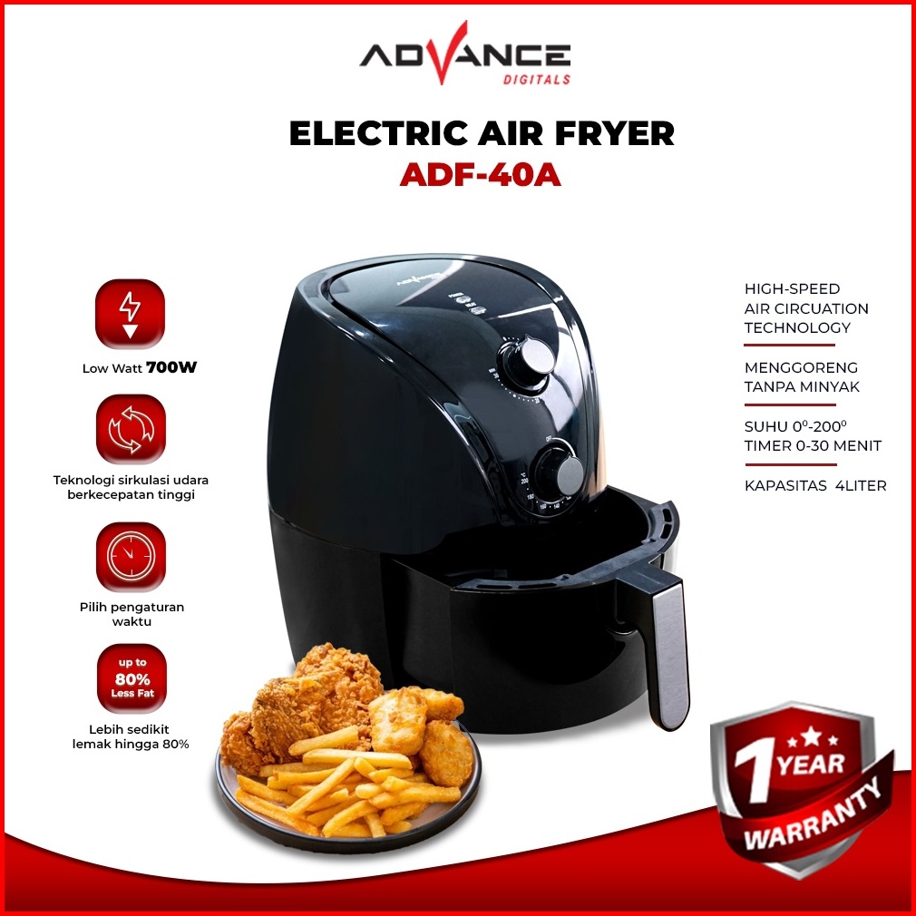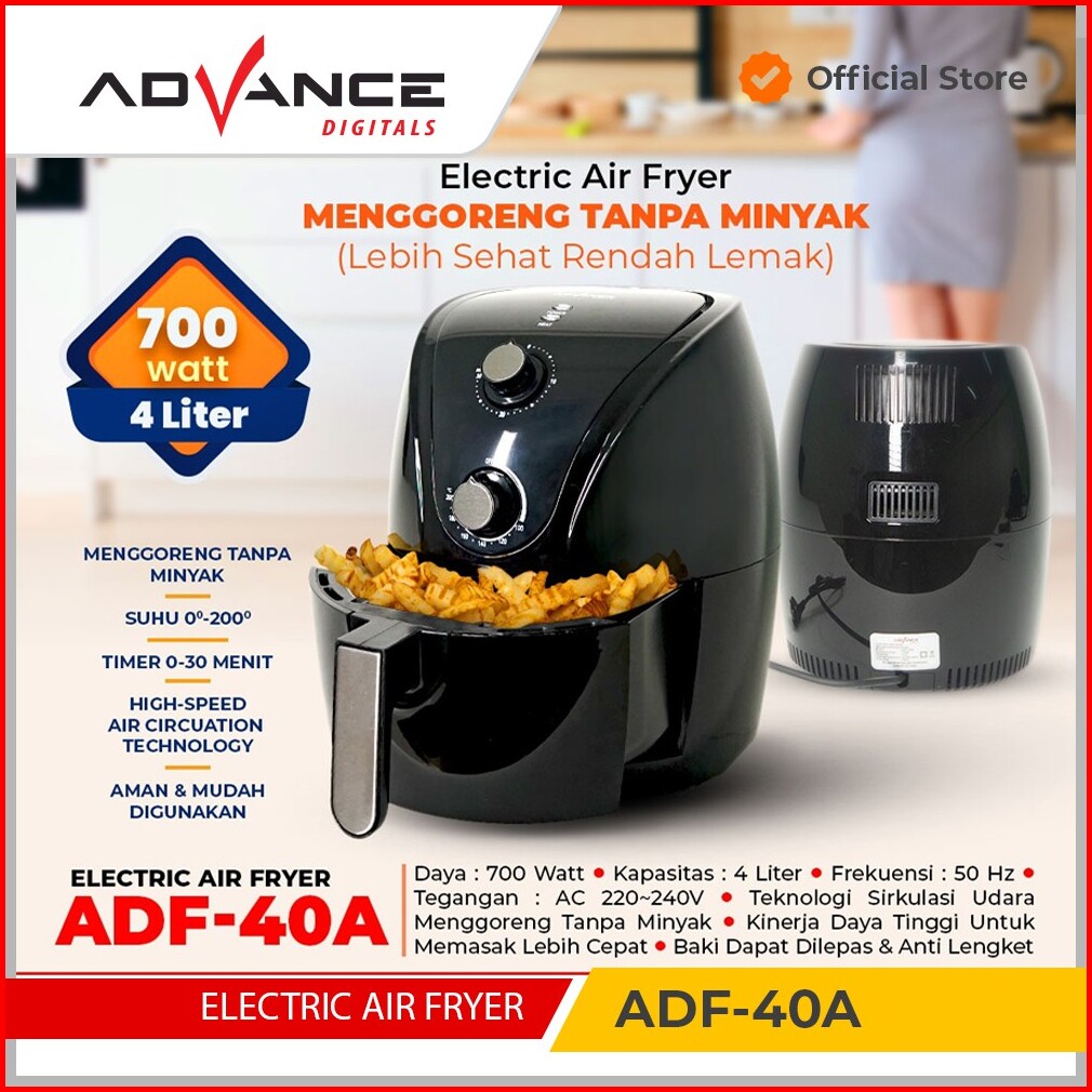 Advance Electric Air Fryer Adf-40a Mesin Penggoreng Tanpa Minyak Aman Untuk Kesehatan 700 Watt Garansi Resmi Advance 1 T