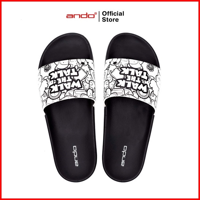 Ando Sandal Selop Slip On Artz Wtt Pria Dewasa - Putih Hitam