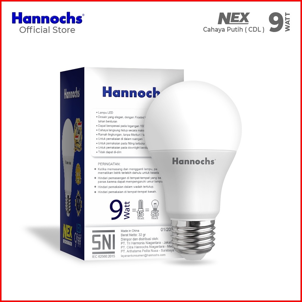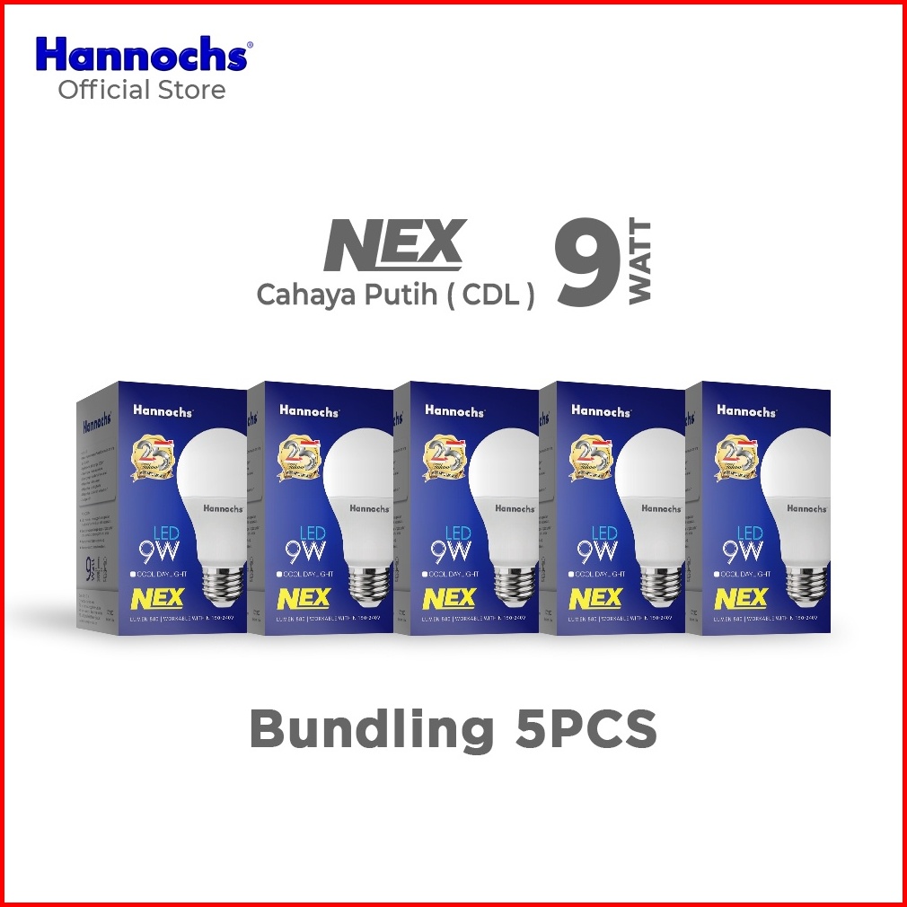 Hannochs Lampu Bohlam Led Nex 9w Cahaya Putih Paket Isi 5pcs
