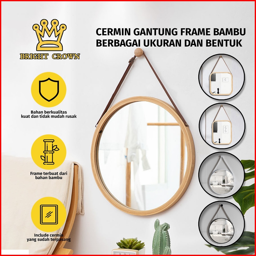 Bright Crown Cermin Dinding Gantung Hiasan Dinding Frame Bambu Tali Strap 5 Model