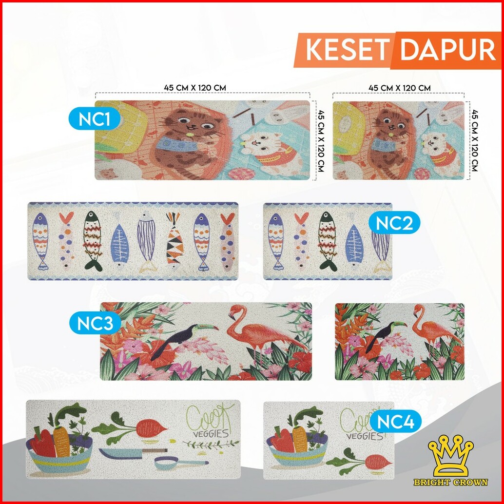 Bright Crown Keset Dapur Modern Mie Bihun Lembut Anti Slip 2 In1 45x75cm 45x120cm 8 Motif