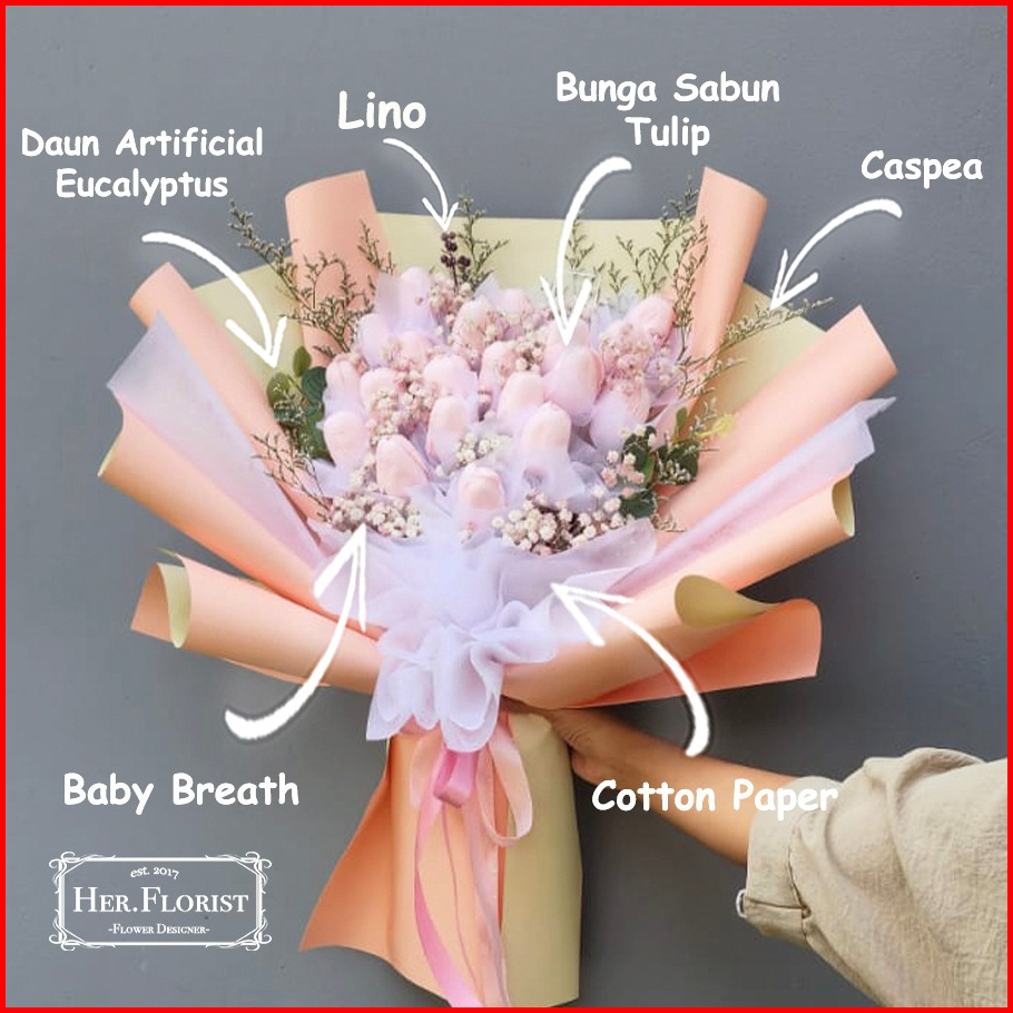 Her.florist Tulip 20pcs Soap Flower Bouquet Buket Bunga Sabun Tulip Bunga Tulip Buket Bunga Tulip Buket Artificial Buket