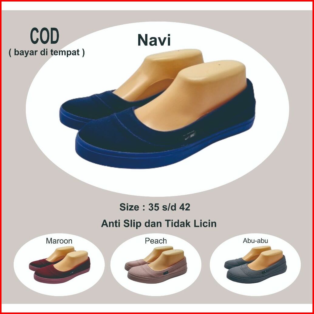 Sepatu Wanita Slip On 05 Navi Polos Sepatu Kerja Kuliah Santai Sepatu Hijabers Sepatu Flat