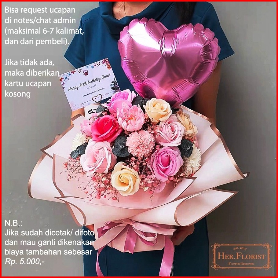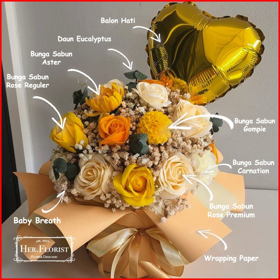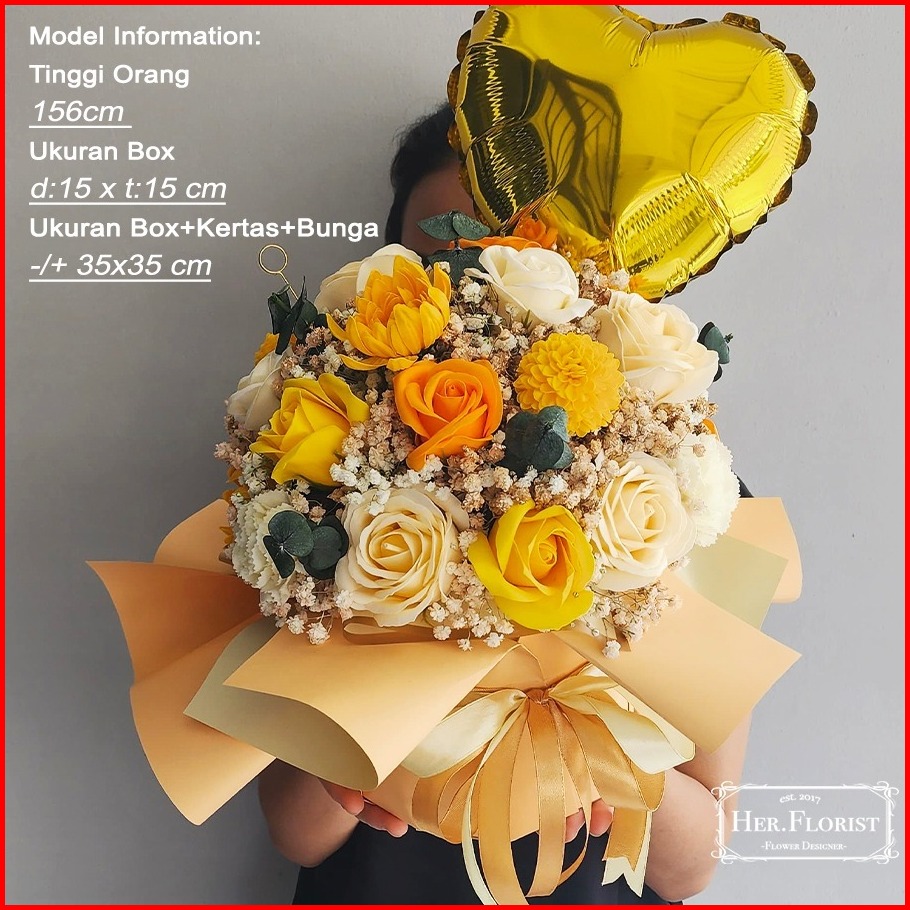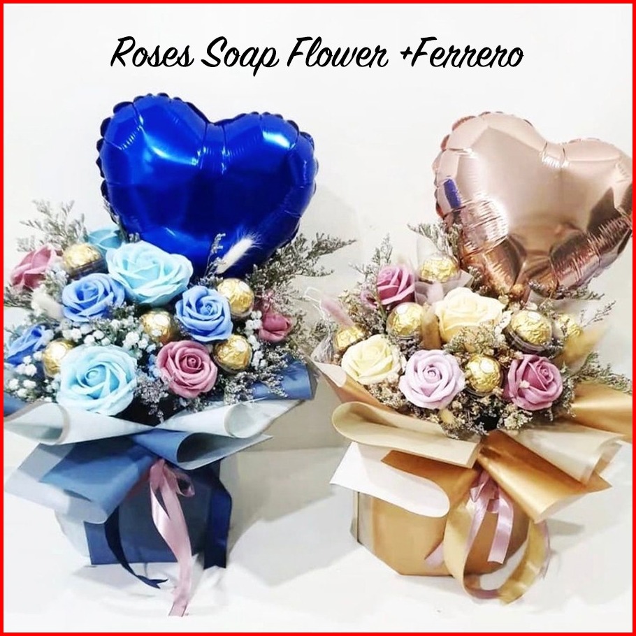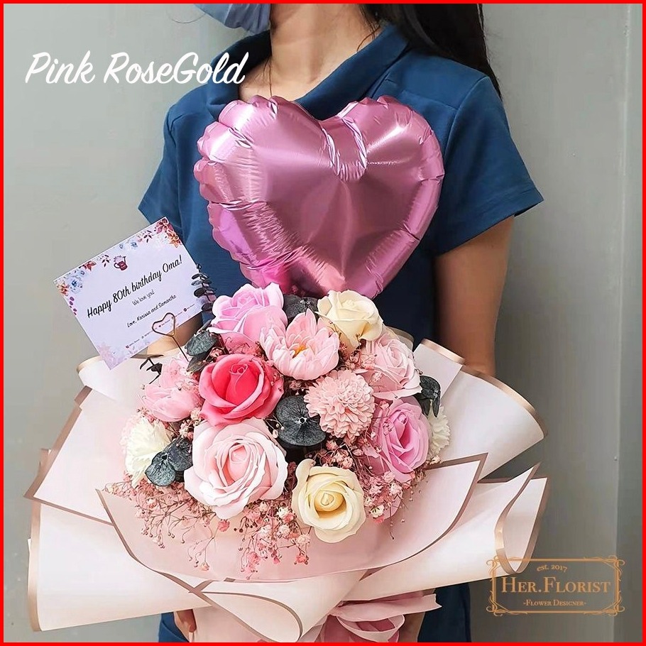 Her.florist Box Of Love Box Bouquet Soap Flower Mix Baby Breath Fresh Preserved Eucalyptus Baby Blue Love Balloon Box Bu