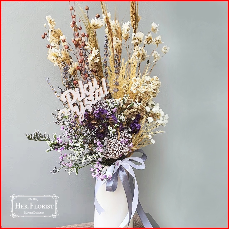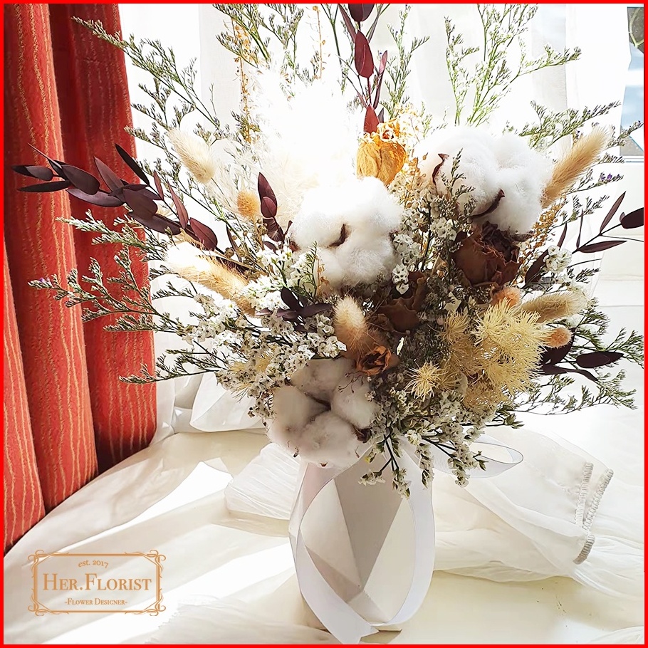 Her.florist Dried Home Decor Concrete Vase Dried Flower Rangkaian Bunga Kering Vas Minimalis Dekor Rumah Hias Vas Pot Bu