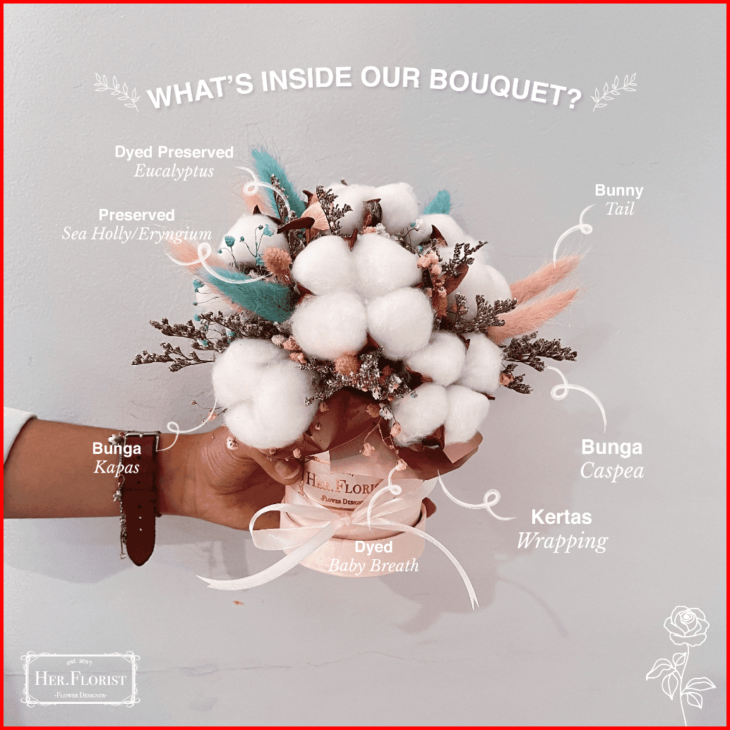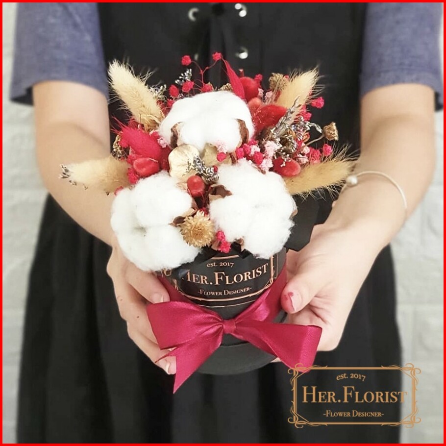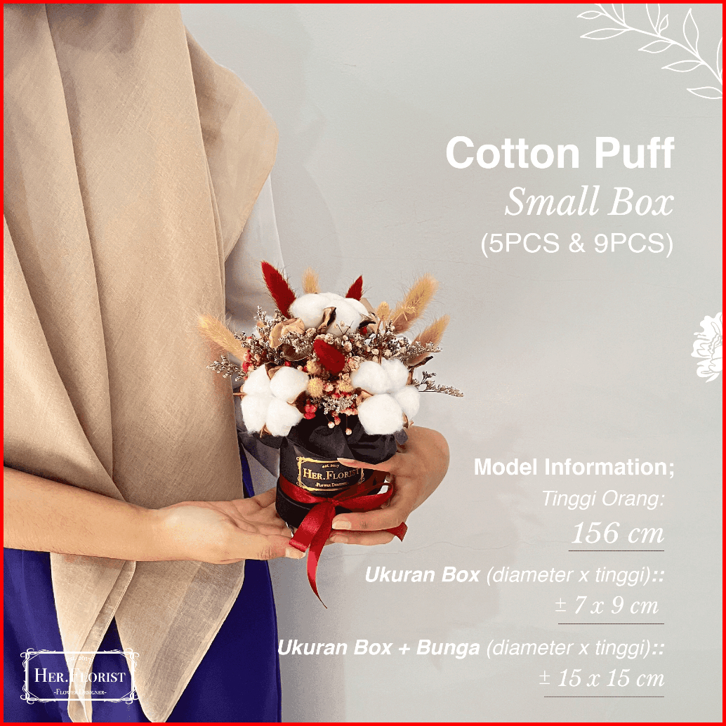 Her.florist New Cotton Puff Small Box Bunga Box Kecil Cotton Flower Dried Flower Bunga Kapas