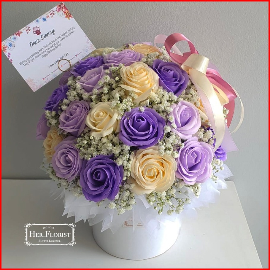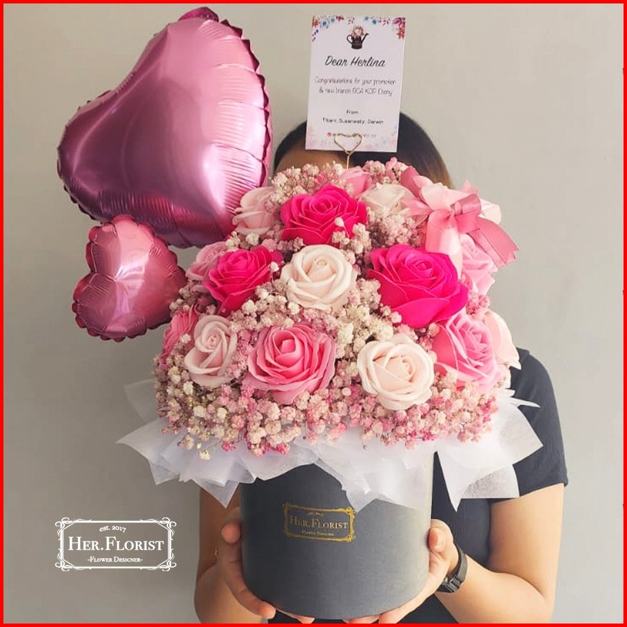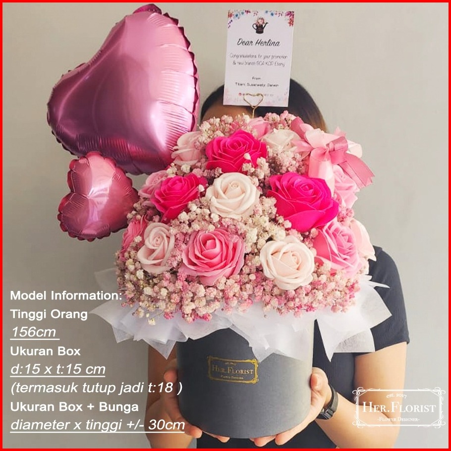 Her.florist Classic Bloom Box Soap Rose Flower Balon Bunga Box Box-d Bunga Congratulations Happy Birthday