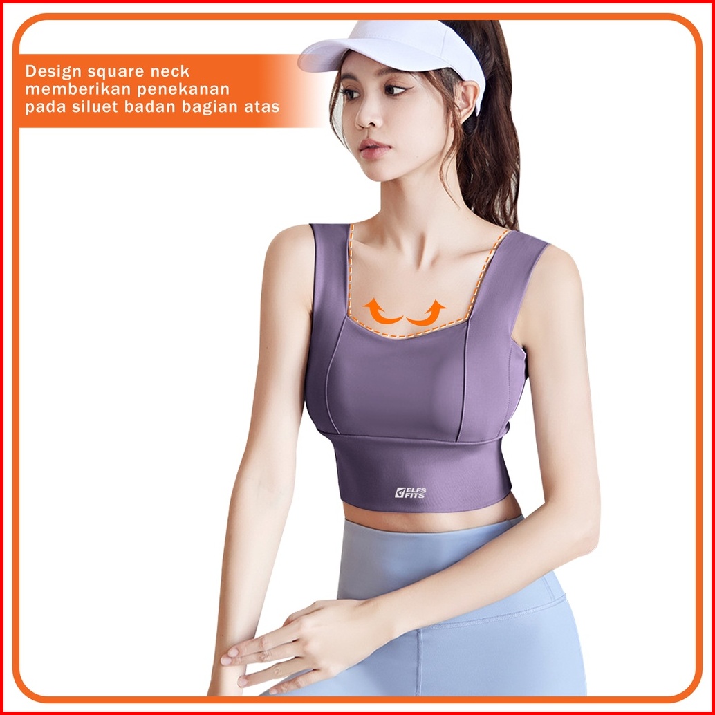 Elfs Active Sports Bra Square Neck Wide Strap Anti Underarm Bulge