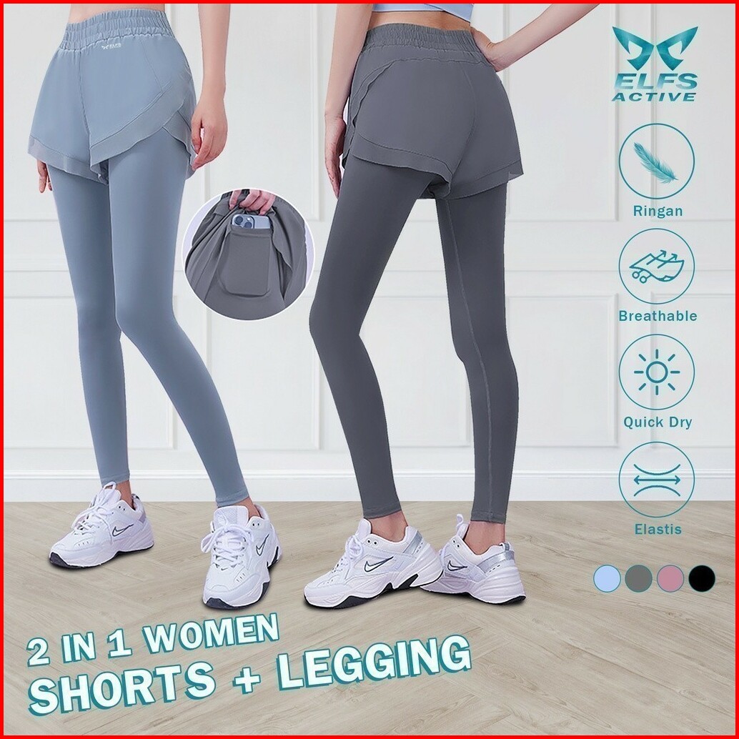Elfs Active 2in1 Womens Shorts Legging Celana Pendek Sport Wanita Fitness